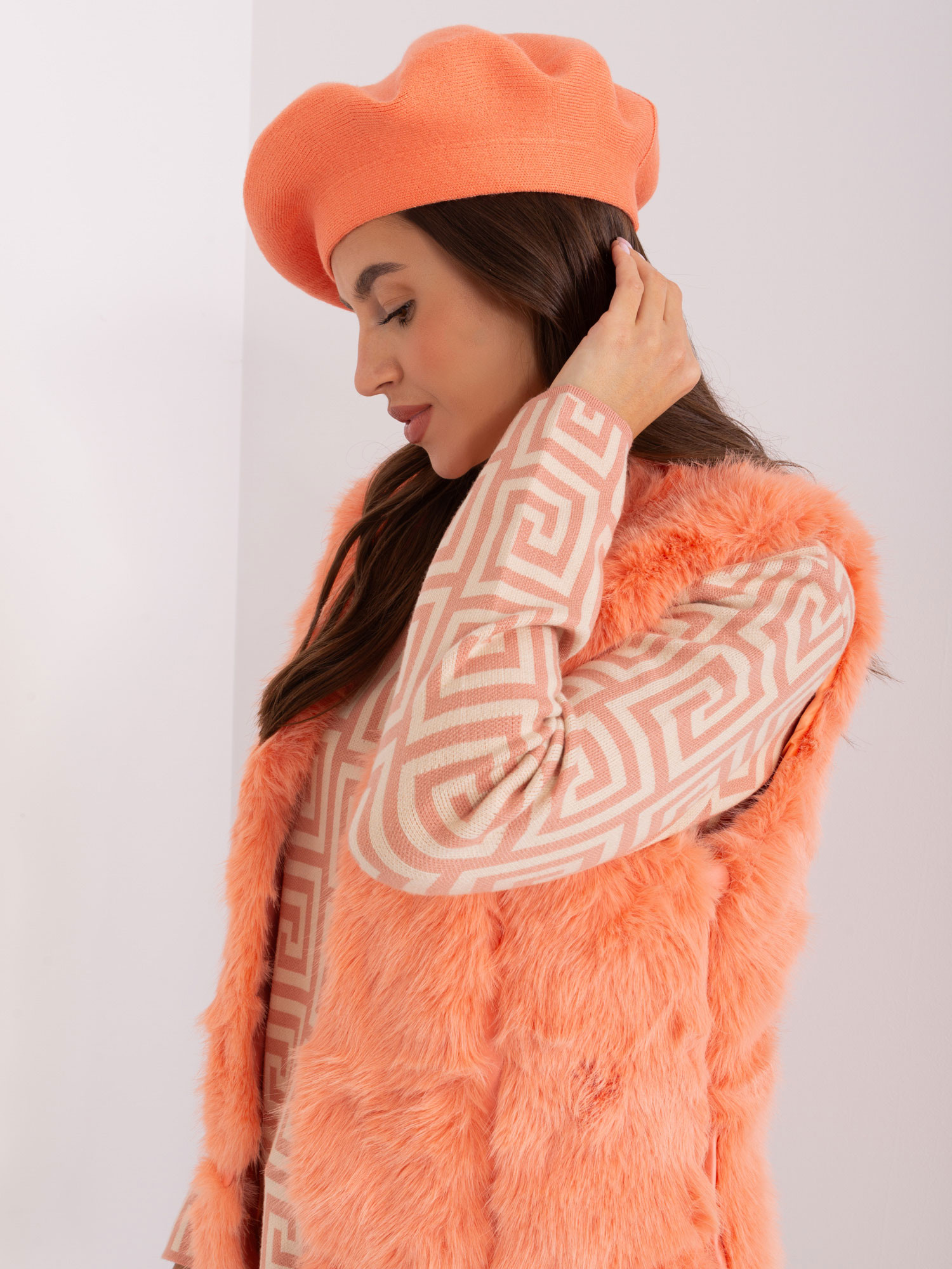 broskvový zimní baret s kašmírem . kód produktu: AT-CZ-231305.85P dominantní vzor: bez vzoru