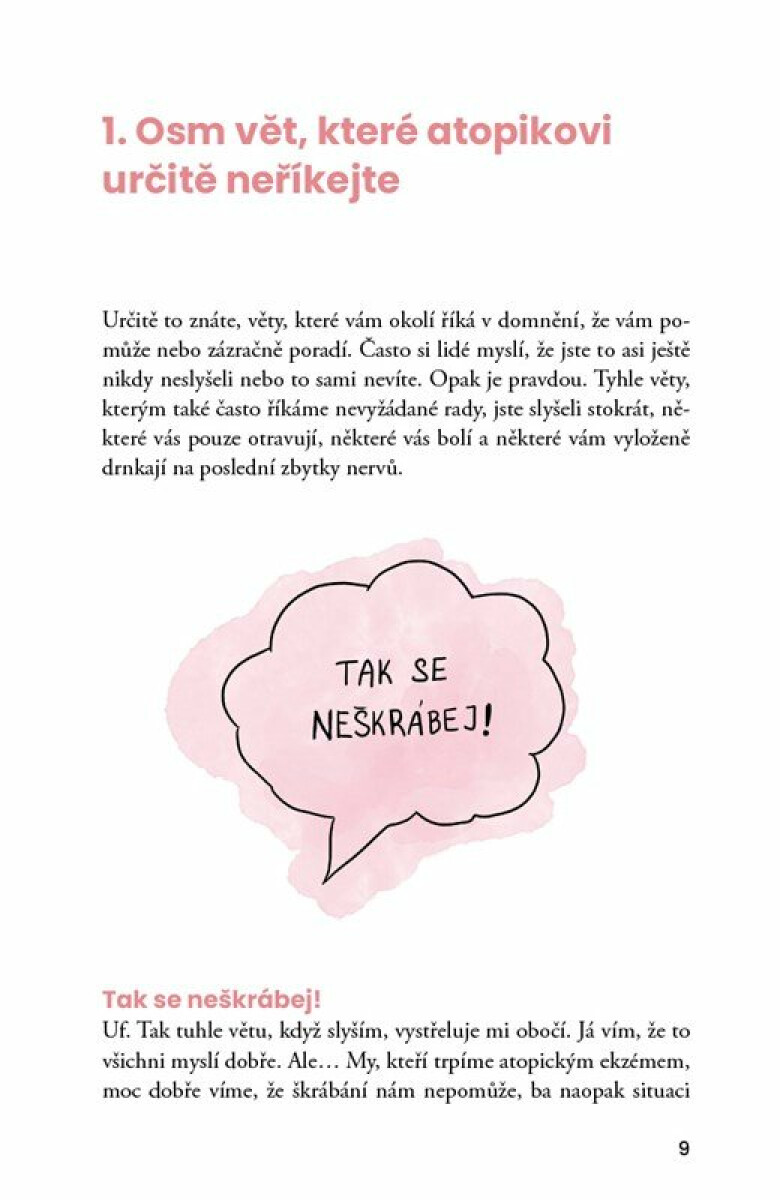 Atopický deník je upřímnou, osobní výpovědí o životě s atopickým ekzémem – o hledání cesty k sobě, o léčbě a jejích úskalích i možnostech. Autorka nesdílí pouze svůj příběh, ale i poznatky, které mohou druhým ušetřit čas, bolest i bloudění. Otevřeně mluví o vedlejších účincích léčby topical steroid withdrawal (TSW), spojeném s dlouhodobým používáním kortikoidů, a přináší naději všem, kdo si připadají ztracení. Atopický deník je víc než kniha. Je to připomínka, že i s ekzémem se dá žít naplno.