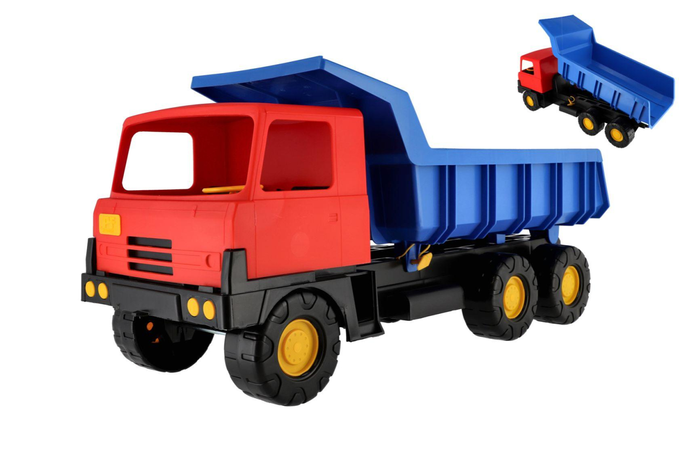 Plastová Tatra 815 s modrou korbou a červenou kabinou je skvělou hračkou pro děti na pískoviště. Velikost 75 cm.