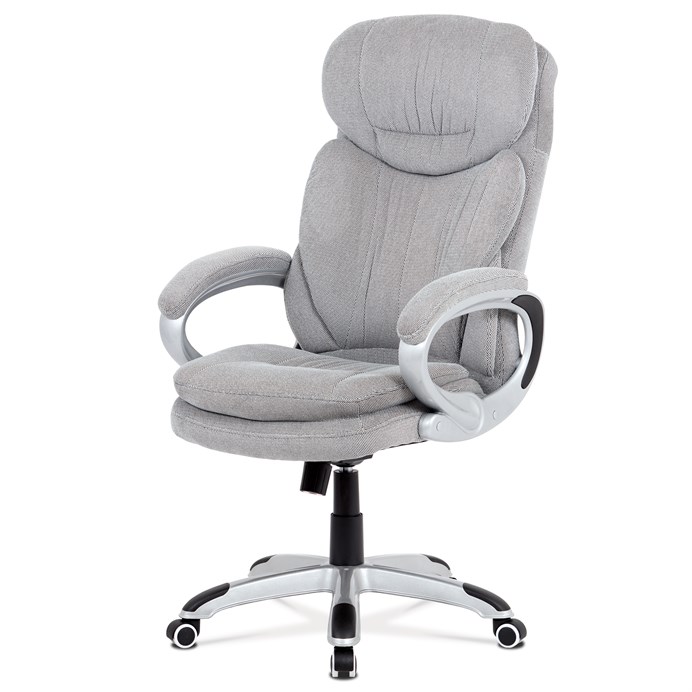 Kancelářská židle v šedé látce nabízí pohodlné sezení díky vyměkčené vrchní části sedáku a opěradla, která je navíc zdobena designovým prošitím. Pevné čalouněné područky zajišťují komfort při práci, zatímco plastový stříbrný kříž poskytuje stabilní základnu s pěti kolečky pro snadnou mobilitu. Houpací mechanismus umožňuje jemné naklánění židle a výšková nastavitelnost sedáku umožňuje přizpůsobení výšky sezení individuálním potřebám. Židle nemá výškově nastavitelný opěrák ani bederní opěrku, což ji předurčuje pro uživatele preferující jednoduchý a funkční design. Celkově je židle vhodná pro kancelářské prostředí, kde oceníte kombinaci pohodlí a praktičnosti.