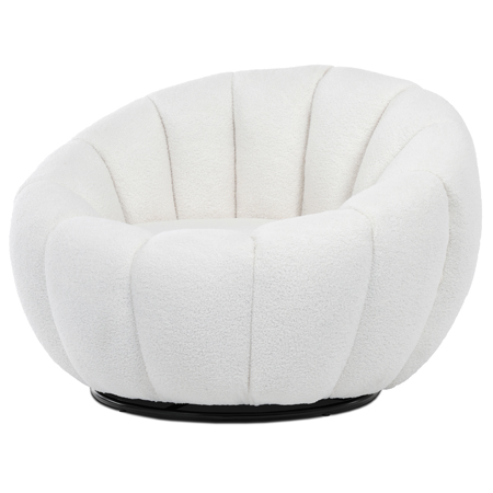 S relaxačním křeslem v bílé Bouclé látce si doslova rozprostřete oblaka pohodlí přímo ve svém obývacím pokoji. Toto moderní a stylové křeslo vyniká svou jemnou texturou látky Bouclé, která je mimořádně příjemná na dotyk. S výraznou nosností a robustní kovovou konstrukcí je toto křeslo ideálním společníkem pro chvíle relaxace. Elegantní a praktické otočné provedení o 360° Vám umožní jednoduše přizpůsobit polohu dle svých potřeb. S pomocí PU pěny jsme dosáhli maximálního pohodlí a výšky sedu 32 cm. Bílá barva primárně přináší svěžest do interiéru, zatímco černá podnož přidává kontrast a vytváří elegantní celkový dojem.