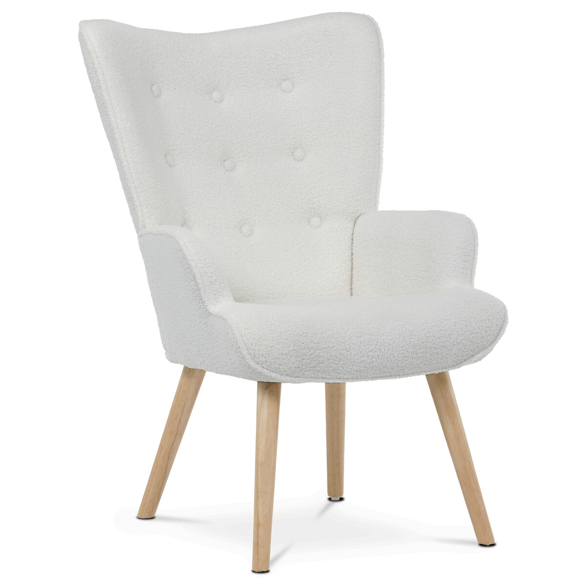 Elegance a pohodlí se setkaly v tomto skvělém křesle "ušák". Jeho švédský styl přináší do Vašeho interiéru jedinečnou atmosféru. Zkrášlete svůj obývací pokoj nebo pracovnu tímto křeslem, které v sobě kombinuje bílou barvu a přírodní masivní nohy. Potah křesla je vyroben z látky bouclé s jemným povrchem. Pěnová výplň křesla Vám poskytne opravdový komfort. Kromě toho, že je toto křeslo stylové a moderní, nabízí také optimální rozměry. S kompaktní šířkou 68 cm, hloubkou 76 cm a výškou 101 cm je ideálním řešením pro menší místnosti, případně pokoje pro hosty. Nehledě na svoji lehkost je toto křeslo velmi odolné a použitelné i k relativně větší zátěži díky své nosnosti až 130 kg.