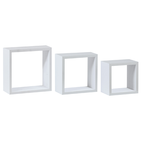 Sada tří nástěnných poliček v bílé matné barvě je vyrobena z MDF materiálu, který zajišťuje pevné a stabilní tělo. Jednoduchý hranatý tvar s čistými liniemi umožňuje univerzální použití v různých typech interiérů, od moderních po minimalistické. Poličky jsou baleny v ochranné fólii, což chrání povrch před poškozením během přepravy a usnadňuje instalaci. Díky různým rozměrům jednotlivých kusů lze vytvořit zajímavé kompozice na stěně, které poslouží k vystavení dekorací nebo praktickému uložení drobných předmětů. Povrch se snadno udržuje a je vhodný pro dlouhodobé používání v domácnostech i kancelářích.
