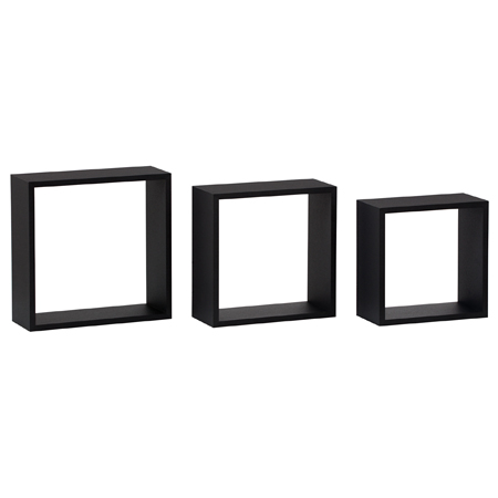 Sada tří nástěnných poliček v matné černé barvě je vyrobena z MDF materiálu, který nabízí kvalitní zpracování a snadnou údržbu. Poličky mají jednoduchý, moderní design s čistými liniemi a hranami, které podtrhují jejich minimalistický vzhled. Různé velikosti jednotlivých kusů umožňují variabilní uspořádání na stěně podle potřeby a prostoru. Jsou vhodné pro vystavení dekorací, knih nebo drobných předmětů a díky pevnému provedení zajistí stabilní oporu. Balení obsahuje ochrannou fólii pro bezpečnou manipulaci a přepravu.