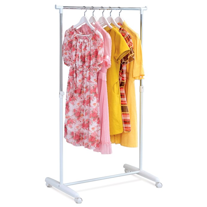 Stojan na šaty dvojramenný s odkladačem, bílá barva, kov / plast, chrom