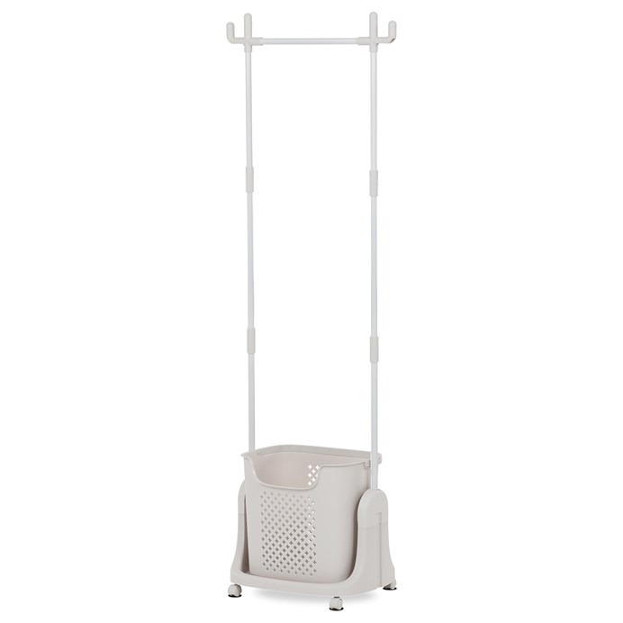 Stojan na šaty jednoramenný, s odkladačem, bílá barva, kov / plast, chrom