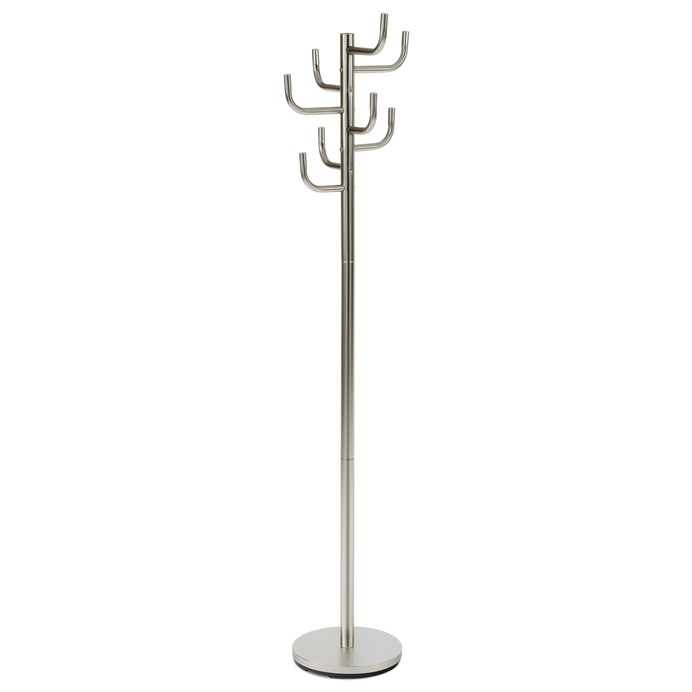 Moderní design v broušeném nikluElegantní vzhled pro každý interiérTento stojanový věšák vyniká svým moderním designem a broušeným niklem, což z něj činí stylový doplněk do každé místnosti. Jeho elegantní vzhled se snadno přizpůsobí různým interiérům, od klasických po moderní, a dodá jim šmrnc a styl.Stabilní a odolná konstrukcePevnost a bezpečnost pro každodenní použitíKovová konstrukce stojanu zajišťuje stabilitu a odolnost i při plném zatížení. Díky kruhové základně se nemusíte obávat o jeho převržení, což z něj činí bezpečnou volbu pro domácnosti i kanceláře.Efektivní využití prostoruVšestranné zavěšení oděvů a doplňkůOsm háčků ve třech úrovních umožňuje efektivní využití prostoru a snadné uspořádání vašich oděvů či doplňků. Každý háček je strategicky umístěn pro maximální praktičnost, což usnadňuje zavěšení kabátů, šál a tašek.Praktická výška a nosnostIdeální pro domácnosti i kancelářeCelková výška 175 cm je ideální pro většinu interiérů, zatímco nosnost 10 kg zajišťuje, že věšák snadno unese běžné množství oděvů. Tento praktický rozměr a nosnost dělají z věšáku univerzální volbu pro různé prostředí. Výhody produktu Elegantní design Broušený nikl dodává věšáku moderní a stylový vzhled, který se hodí do každého interiéru. Vysoká stabilita Kruhová základna zajišťuje pevnost a bezpečnost, což znamená, že věšák je stabilní i při plném zatížení. Efektivní prostorové řešení Tři úrovně háčků umožňují efektivní využití prostoru pro zavěšení různých oděvů a doplňků. Univerzální použití Vhodný do domácností i kanceláří díky praktické výšce 175 cm a nosnosti 10 kg. Snadná údržba Matný povrch z broušeného niklu je snadno udržovatelný a odolný vůči opotřebení. Rychlá montáž Jednoduché sestavení a demontáž umožňuje rychlé a snadné přemístění věšáku. Kolik oděvů unese tento věšák? Věšák má nosnost 10 kg, což odpovídá běžnému množství oděvů a doplňků. Je věšák stabilní na koberci? Ano, kruhová základna zajišťuje stabilitu i na měkkých površích jako je koberec. Jaká je výška věšáku? Celková výška věšáku je 175 cm, což je ideální pro většinu interiérů. Jak se věšák udržuje? Povrch z broušeného niklu je snadno udržovatelný, stačí otřít vlhkým hadříkem.