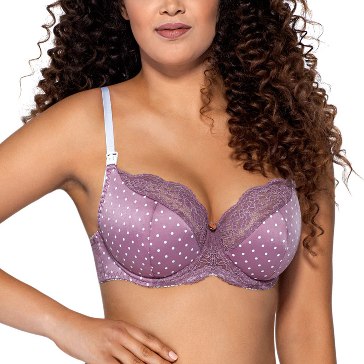 Podprsenka značky Ava, model 1989 Indi Maxi, s drátky pro podporu a tvarování prsou, nastavitelná ramínka, kovové háčky, zapínání na háčky a očka, zadní díl, vyrobeno z 88% polyamidu, 8% bavlny, 4% elastanu, odnímatelné košíčky, dámské těhotenské oblečení.