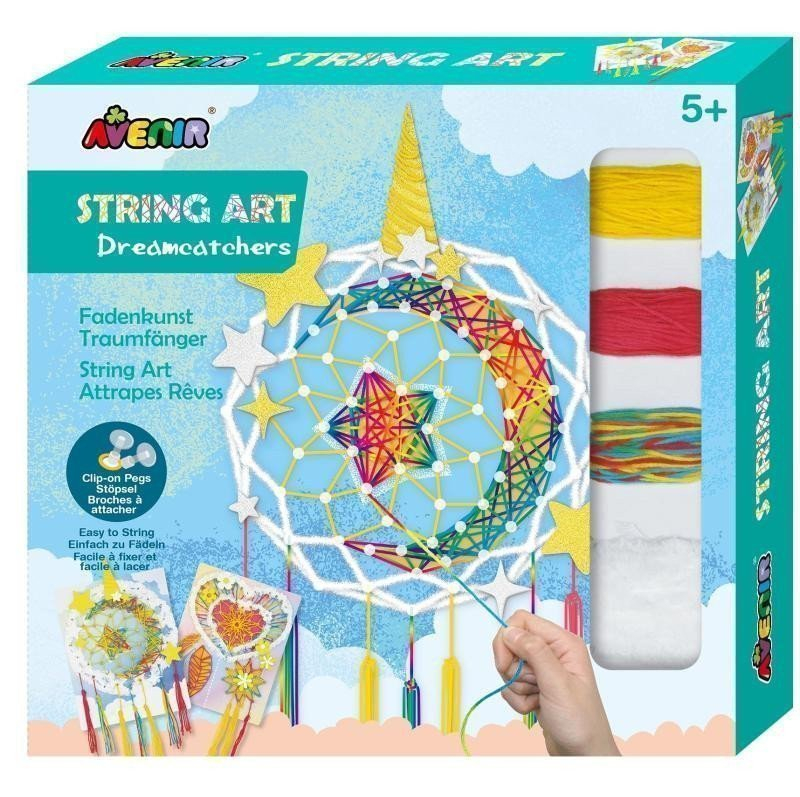 Vyrobte si krásné umělecké dílo s touto soupravou ze série Avenir! Barevný provázek opatrně omotejte a naviňte kolem kolíků a ozdobte, abyste dosáhli pohádkového výsledku. Navlékněte 2 krásné lapače a ozdobte je třpytivými samolepkami! Plastové kolíky zapadají do desky bez ostrých hrotů.Každé balení obsahuje 2 umělecké listy, umělé kolíčky, barevný provázek a krásné ozdobné kousky.19,5 cm x 4 cm x 20,5 cmVěk 5+