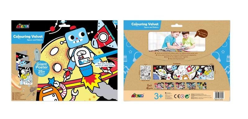 Barevný sametový plakát je báječný dlouhý banner o rozměrech 126 cm x 29,5 cm. Banner je částečně předtištěný barevně a obsahuje bílá místa, kde si děti mohou vybarvit. Sada je dodávána s více než 25 sametovými samolepkami, které vytvářejí mistrovské dílo. 126 cm x 29,5 cm Věk 3+