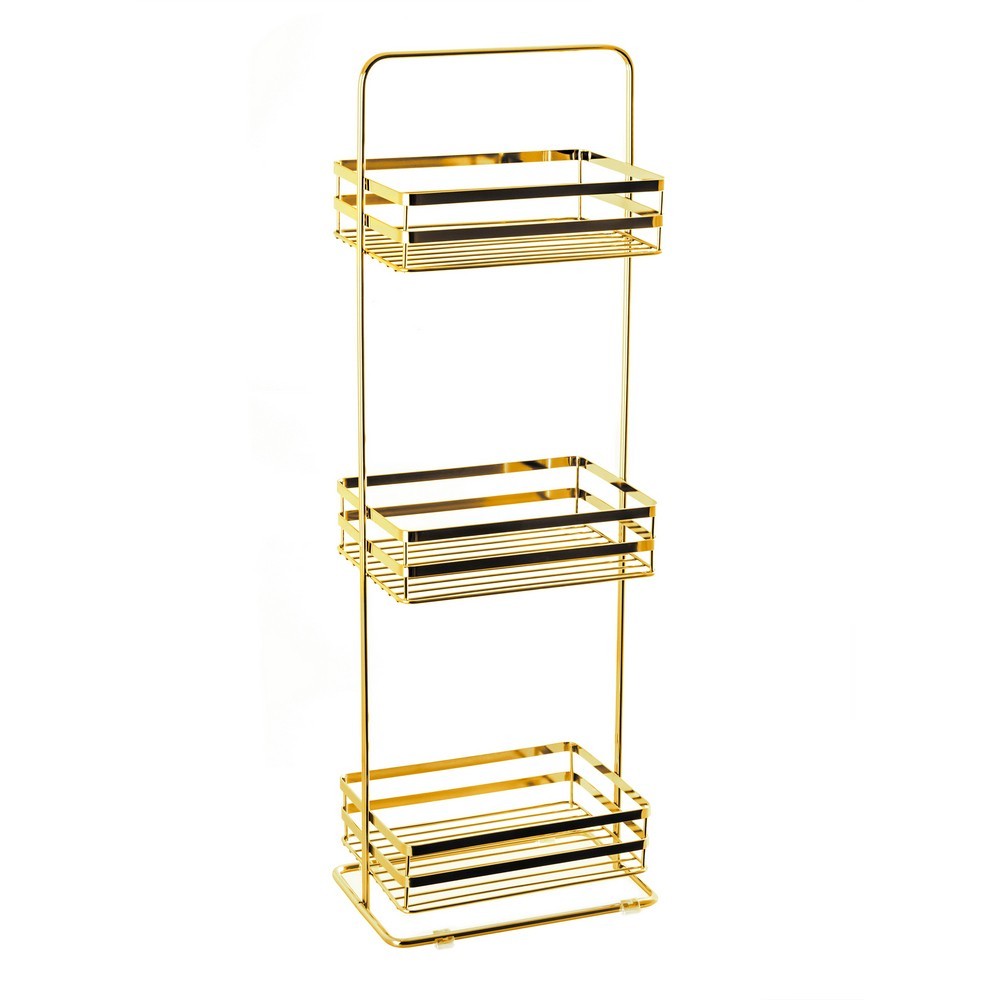 Materiál: lakovaná ocel Rozměry produktu: 24,50 cm x 76,00 cm x 17,00 cm Čistá hmotnost: 2,07 kg Popis: Elegantní ocelová police AWD INTERIOR je dokonalou kombinací stylu a funkčnosti. Vyrobeno z oceli s lesklou zlatou povrchovou úpravou, dokonale se hodí do moderních interiérů a dodává mu trendy. Tři prostorné police poskytují dostatek úložného prostoru při zachování kompaktních rozměrů, díky čemuž je ideální do koupelny, kuchyně nebo předsíně. Drátěná konstrukce mu dodává lehký vzhled, zatímco plastové nožičky chrání podlahu před poškrábáním. Jeho lehká, přenosná konstrukce umožňuje snadné přemístění podle vašich potřeb.