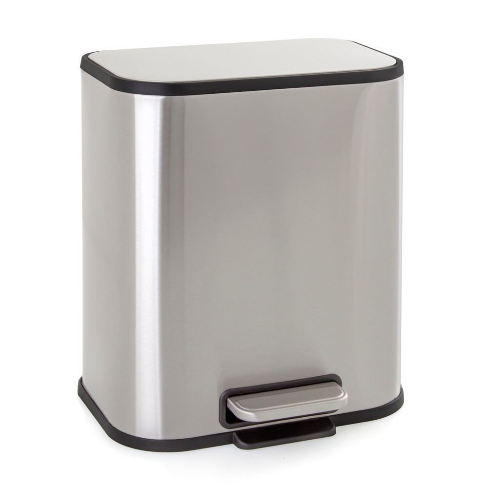 Materiál: nerezová ocel Rozměry produktu: 24,5 cm x 28,5 cm x 19,5 cm Popis: 5litrový odpadkový koš je vyroben z nerezové oceli, vyznačující se tzv. kartáčovanou úpravou. Jeho funkčnost byla dále vylepšena systémem SOFT CLOSE, zajišťujícím pomalé zavírání víka, díky čemuž je používání pohodlné a tiché. Víko odpadkového koše se otevírá pohodlným nožním pedálem, takže se nemusíte ohýbat při likvidaci odpadu. Vnitřek odpadkového koše je navíc vybaven vnitřním plastovým košem, opatřeným ergonomickými držadly, výrazně usnadňujícími proces vyprazdňování. Tento koš také umožňuje umístění pytlů na odpadky, takže nejsou vidět, když je odpadkový koš zavřený, což má pozitivní dopad na hygienickou údržbu. Odpadkový koš je vhodný pro použití v koupelnách, kancelářích nebo ložnicích.