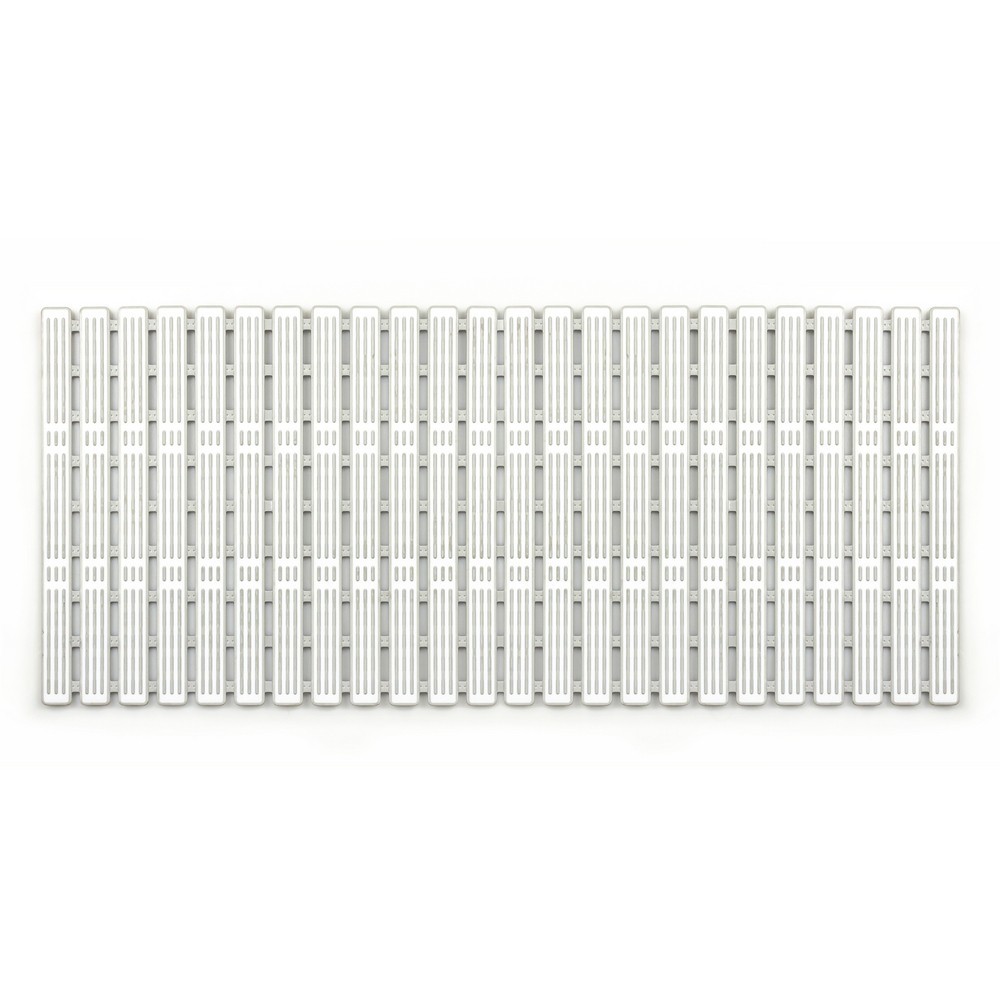 Materiál: PP + TPE Rozměry produktu: 91,00 cm x 0,50 cm x 40,00 cm Čistá hmotnost: 1,18 kg Popis: Protiskluzová podložka podlouhlého tvaru vyrobená z kombinace dvou funkčních materiálů: PP a TPE. Skládá se z pevných lamel v elegantní bílé a šedé barvě a je tak ideálním doplňkem do moderních interiérů. Podložka perfektně funguje na rovném povrchu a poskytuje ochranu podlahy při vystupování z vany nebo sprchy. Vybavena přísavkami, které jej bezpečně přichytí k podlaze, zaručuje stabilitu a bezpečnost uživatele. Koupelnová předložka měří 91 cm na délku a 40 cm na šířku. Prát na 30 stupňů, nežehlit, chemicky nečistit, nebělit, nesušit v sušičce.