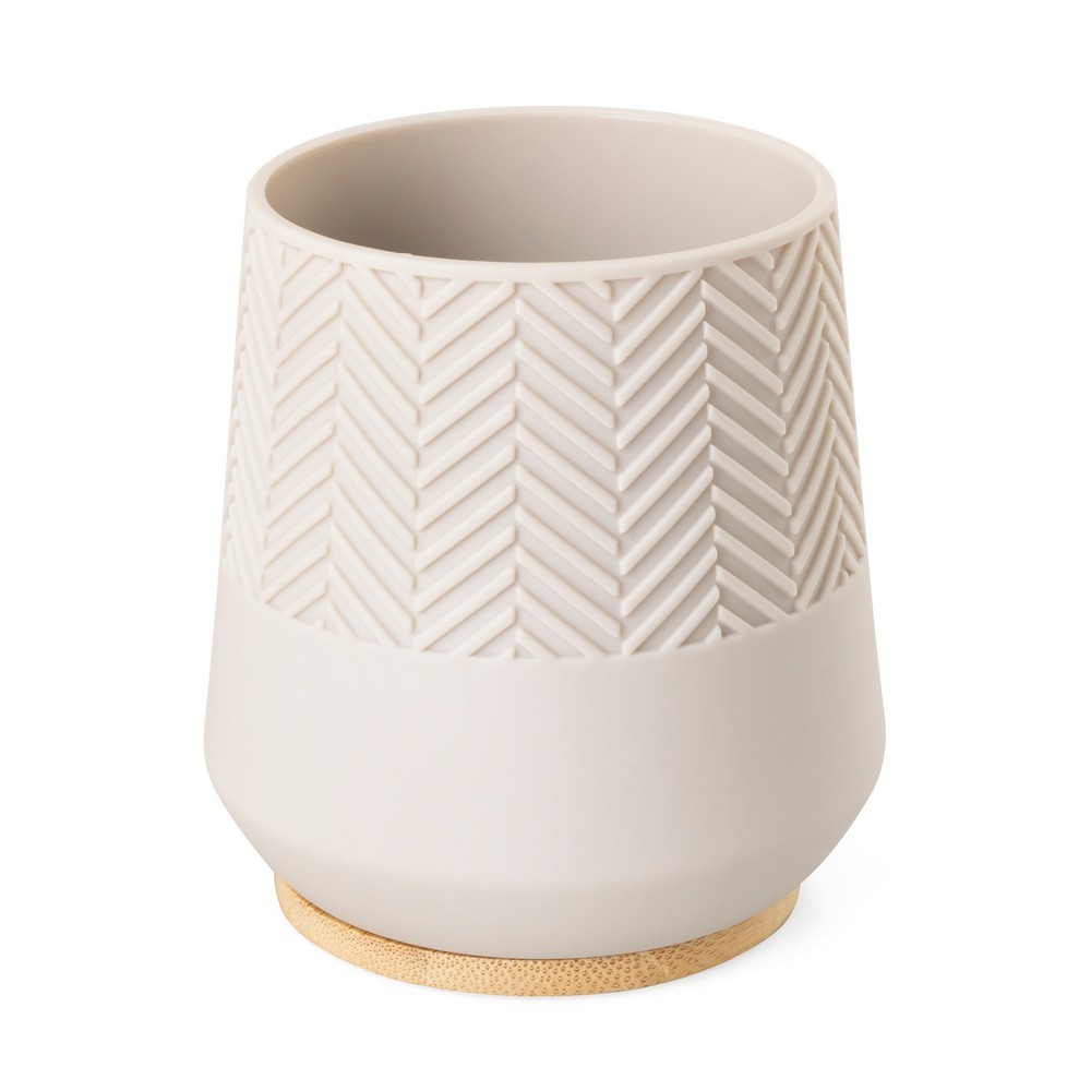 Materiál: ABS Objem: 250 ml Rozměry produktu: 9 cm x 10 cm x 9 cm Popis: Sklenka Hermosa o objemu 250 ml je stylovým a funkčním doplňkem do každé koupelny. Vyrobeno z vysoce kvalitních materiálů v béžové barvě, vyznačuje se jedinečným vzorem rybí kosti, který mu dodává elegantní a moderní vzhled. Dekorativní prvek z přírodního bambusu dodává teplo a útulnost, takže se skvěle hodí k ostatním koupelnovým doplňkům. Kelímek je ideální pro uložení zubních kartáčků, zubní pasty nebo jiných předmětů, kombinuje estetiku s praktičností. Jeho minimalistický design zajistí, že krásně doplní různé styly interiéru.