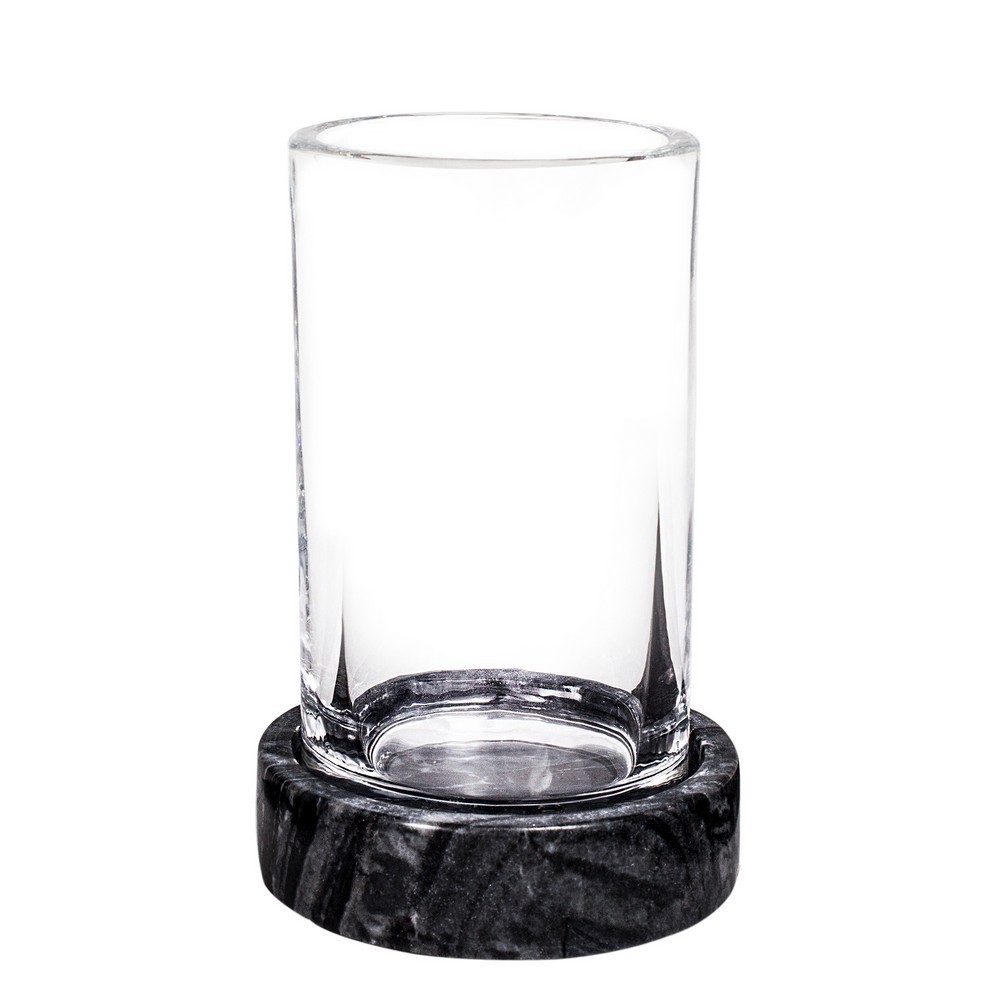 Skleněný hrnek s mramorovým podstavcem je jedním z prvků jedinečné kolekce koupelnových doplňků Q-BATH. Bezkonkurenční kvalita použitého kamene a jedinečný a klasický design z něj činí jeden z nejkrásnějších prvků kolekce Pure Natural. Průhlednost skla v kombinaci s černými, bílými a šedými odstíny mramoru tvoří moderní duo. Barvy v kompozici evokují představu hvězdné noční oblohy a mraků, které se přes ni řítí. Tento hrnek je ideálním produktem pro uložení kosmetiky nebo zubních kartáčků. Stane se také stylovým doplňkem každého toaletního stolku. Výrobky z přírodního kamene se mohou lišit barvou, odstínem, vzorem a strukturou. V závislosti na povaze kamenného bloku, ze kterého je kámen broušen, mohou existovat rozdíly v převládající barvě daného výrobku. Vzor na přírodním kameni je jedinečný.