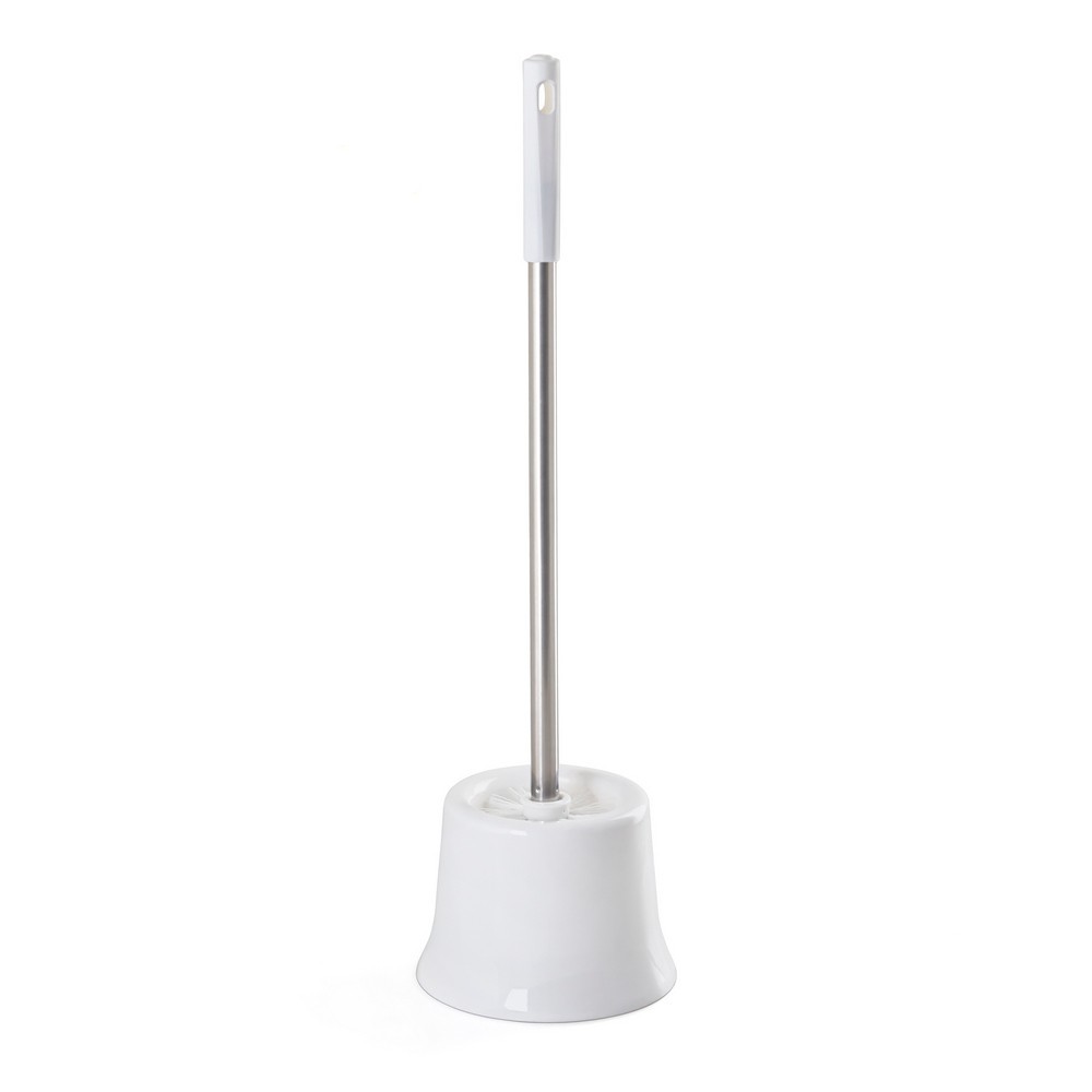 Materiál: plast Rozměry produktu: 14,3 cm x 51 cm x 14,3 cm Popis: WC kartáč s plastovou nádobou v bílé barvě poskytuje praktické a estetické řešení pro udržení čistoty v koupelně. Lehká a hladká nádoba se snadno čistí a zajišťuje pohodlné používání. Čisticí hlavice kartáčku je vyrobena z hustých, plastových štětin v bílé barvě, účinně odstraňující nečistoty a usazeniny z povrchů. Průměr hlavy kartáčku je přibližně 75 mm.