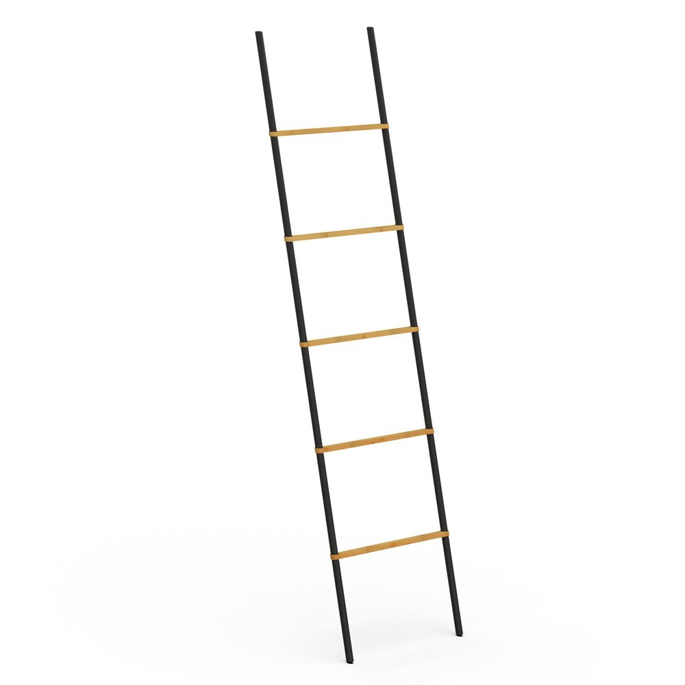 Materiál: lakovaná ocel + bambus Rozměry produktu: 45 cm x 162,7 cm x 2,4 cm Čistá hmotnost: 1,14 kg Popis: Stojan na ručníky v podobě žebříku je inovativní řešení pro ukládání ručníků v koupelně. Jeho popularita pramení z jeho schopnosti pojmout několik velkých ručníků na malý prostor, takže je ideální pro ještě menší koupelny. Rám věšáku na ručníky je vyroben z matně černé lakované oceli, zatímco příčky jsou vyrobeny z pravého bambusového dřeva, které dobře funguje ve vlhkém prostředí. To umožňuje bez obav pověsit mokré ručníky. Kombinace černé a bambusového dřeva je oblíbená již léta a dodává koupelně moderní a přitom přirozený vzhled. Žebřík na ručníky je také vybaven protiskluzovými nožičkami, které zabraňují jeho klouzání po podlaze. Koupelnový věšák na ručníky má tyto rozměry: 45 x 162,7 x 2,4 cm.