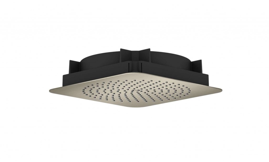 Stropní sprcha barva: kartáčovaný nikl materiál: kov hranatý tvar rozměr: 270 x 270 mm 1 proud - Rain max. průtok při 3 bar: 6,8 l/min doporučený tlak vody min. 1,2 bar QuickClean technologie pro snadnou údržbu instalace do podhledu vhodné pro průtokové ohřívače vody Montáž na montážní těleso, nutné dokoupit zvlášť.