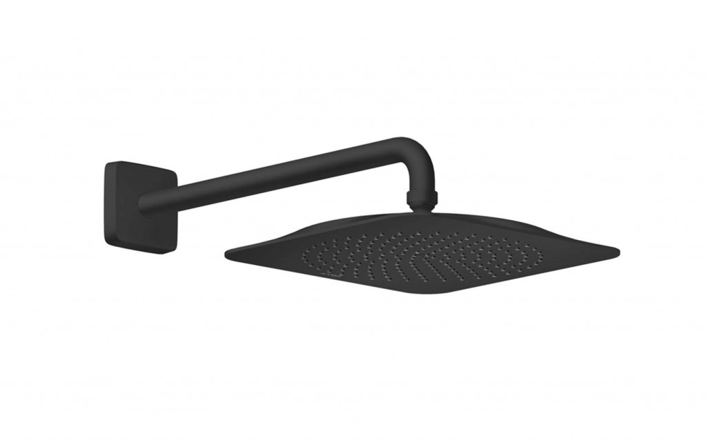 Horní sprcha s ramenem barva: matná černá materiál: kov hranatý tvar rozměr: 270 x 270 mm 1 proud - PowderRain max. průtok při 3 bar: 11 l/min doporučený tlak vody min. 1,0 bar QuickClean technologie pro snadnou údržbu s nástěnným sprchovým ramenem délka ramena: 390 mm připojení G 1/2" vhodné pro průtokové ohřívače vody