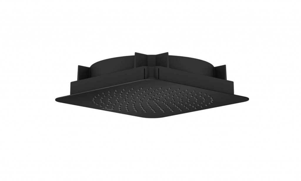 Stropní sprcha barva: matná černá materiál: kov hranatý tvar rozměr: 270 x 270 mm 1 proud - Rain max. průtok při 3 bar: 11,3 l/min doporučený tlak vody min. 1,0 bar QuickClean technologie pro snadnou údržbu instalace do podhledu vhodné pro průtokové ohřívače vody Montáž na montážní těleso, nutné dokoupit zvlášť.