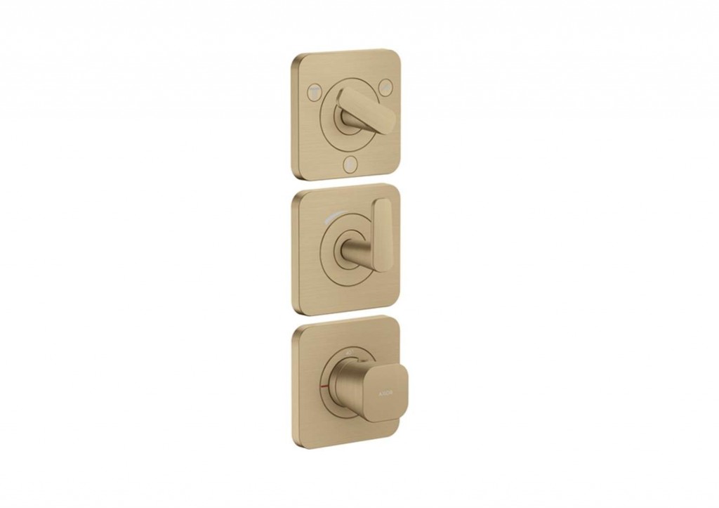 Termostat pod omítku barva: kartáčovaný bronz rozměr krycích desek: 120 x 120 mm podomítková montáž kohoutkové ovládání pro současné použití 2 spotřebičů uzavírací ventil, přepínací ventil Quattro pro ovládání 3 spotřebičů termostatická kartuše Safety Stop - ochrana proti opaření maximální průtok 30 l/min při 3 bar max. provozní tlak: 10 bar Montážní těleso není součástí dodávky.