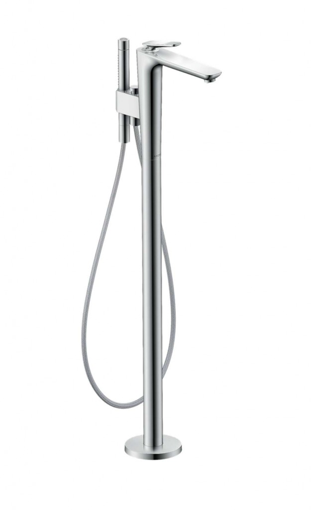 Vanová baterie na podlahu s příslušenstvím barva: chrom výška baterie: 863 - 943 mm délka výtoku: 194 mm pákové ovládání instalace na podlahu s automatickým přepínačem vana/sprcha max. průtok při 3 bar: 23,3 l/min keramická kartuše ruční sprcha 2 sprchové proudy - Rain, MonoRain připojení DN15 Montážní těleso není součástí dodávky.