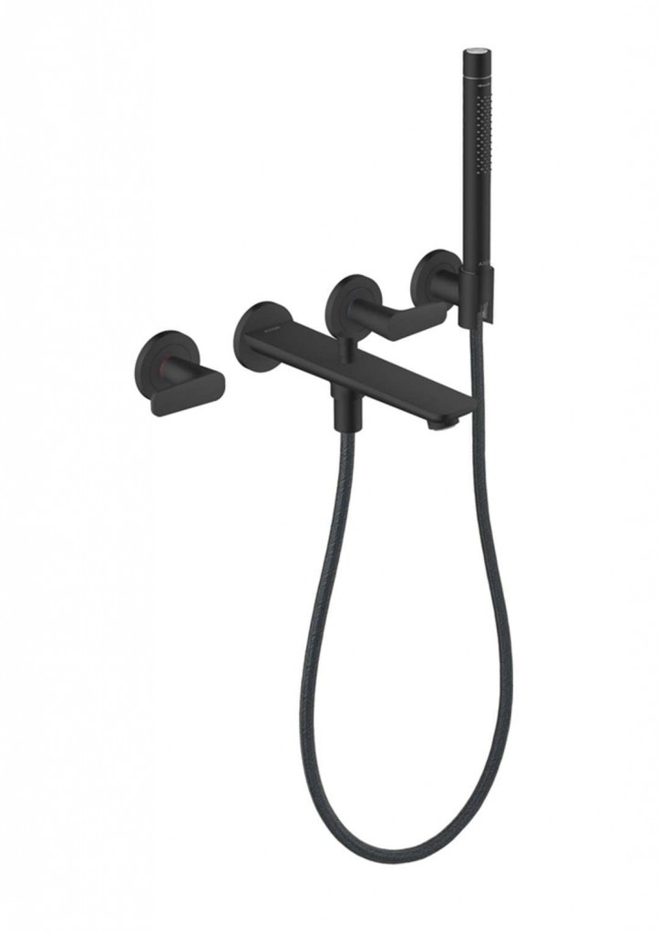 Podomítková vanová baterie s příslušenstvím barva: matná černá délka výtoku: 222 mm podomítková montáž kohoutkové ovládání s automatickým přepínačem vana/sprcha max. průtok při 3 bar: 20 l/min s technologií AirPower QuickClean technologie pro snadnou údržbu zpětná klapka ruční sprcha, 2 funkce Rain, MonoRain připojení DN15 Montážní těleso není součástí dodávky.