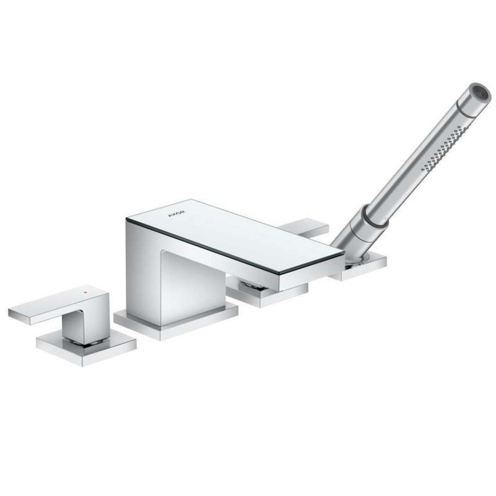 Čtyřotvorová baterie na okraj vany bez tělesa instalace na montážní těleso (není součástí) výtok 150 mm destička z bezpečnostního skla průtok vanovým výtokem při 0,3 MPa: 22 l/min vanový výtok - normální proud vanový výtok s přepínačem tyčová ruční sprcha, 2 druhy proudu - normální a jemný maximální vytažení ruční sprchy 1,10 m průtok ruční sprchy při 0,3 MPa: 16 l/min zpětný ventil hadicová souprava Secuflex