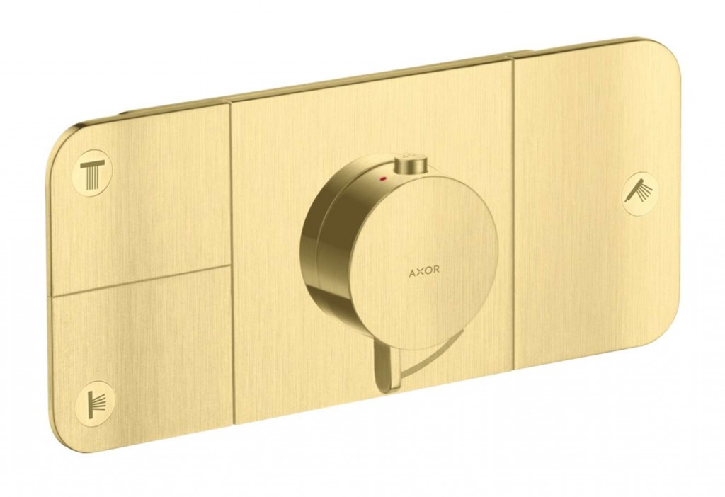 Podomítková termostatická baterie barva: kartáčovaná mosaz podomítková montáž rozměr krycí desky: 270 x 120 mm ovládací tlačítko Select Eco-Function – jednoduchá regulace průtoku díky kohoutkovému ovládání pro 3 spotřebiče a 1 přídavný vývod termostatická kartuše ventil Start/Stop pro ovládání funkcí současné využití několika spotřebičů termostat nabízí možnost termické dezinfekce Safety Stop - ochrana proti opaření maximální průtok při 3 bar: 30 l/min max. provozní tlak: 5 bar zpětná klapka termostat je dodáván s tlačítky Hand shower, Rain large a Body spray Montážní těleso není součástí dodávky.