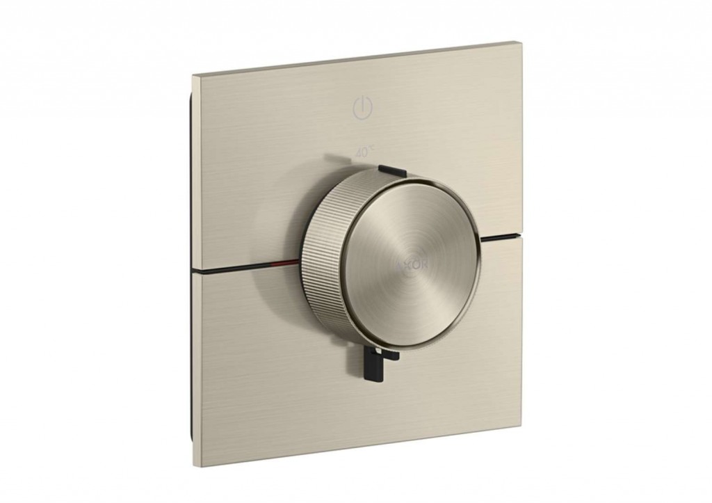Termostat pod omítku ShowerSelect ID barva: kartáčovaný nikl materiál: kov podomítková montáž rozměr krycí desky: 155 x 155 mm ovládání Select-paddle a haptická rukojeť pro 1 spotřebič termostatická kartuše ventil Start/Stop pro ovládání funkcí regulace průtoku vody s funkcí Stop termostat nabízí možnost termické dezinfekce bezpečnostní zarážka 40 °C - ochrana proti opaření maximální průtok 20,3 l/min při 3 bar max. provozní tlak: 10 bar Montážní těleso není součástí dodávky.
