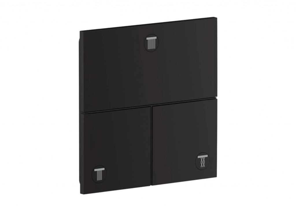 Podomítkový ventil barva: matná černá materiál: kov podomítková montáž rozměr krycí desky: 155 x 155 mm ovládání Select-paddle pro 3 spotřebiče ventil start/stop horní průtok na výstupu: 26 l/min průtok vlevo a vpravo: 26 l/min maximální průtok při 3 barech: 32 l/min min. provozní tlak: 1 bar max. provozní tlak: 10 bar ventil je dodáván s tlačítky Rain Small, Rain Large, Hand shower, Waterfall a MonoRain Montážní těleso není součástí dodávky.