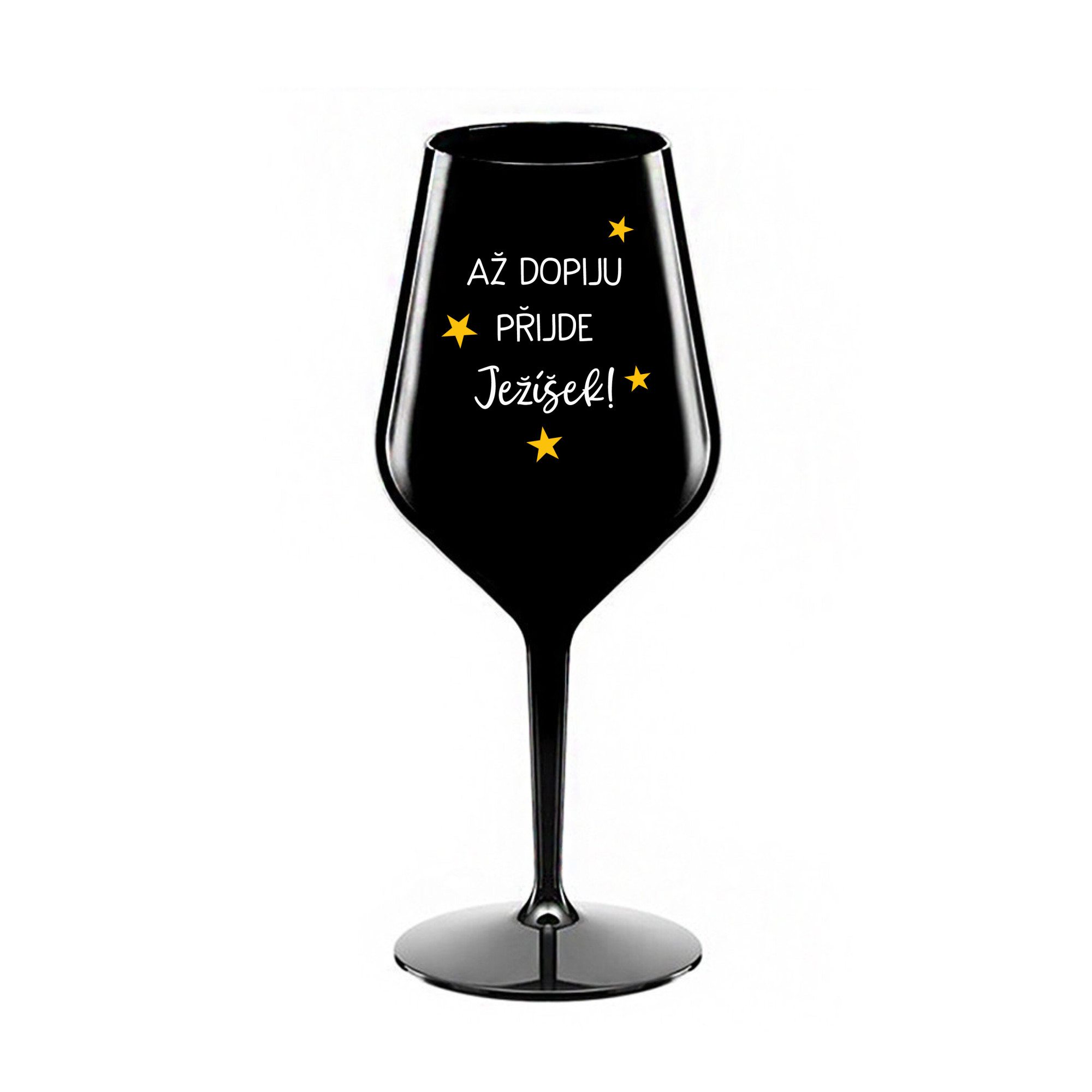 Nerozbitná černá vinná sklenice s motivem AŽ DOPIJU, PŘIJDE JEŽÍŠEK je skvělá na zahradu, pláž, výlet, piknik a parádu udělá i při kempování. Jelikož je vyrobená z kvalitního polykarbonátu je de facto nerozbitná. Je to luxusní kousek, s nímž si víno můžete vychutnat prostě kdekoliv. Mají ergonomický tvar, který příjemně padne do ruky a protože je lehká, usnadňuje to její přenášení. Je snadno skladovatelná a lehce se čistí. Díky svému designu si s ní můžete vychutnat doopravdy kdekoliv bezproblémové pití výborného vína. Materiál PP. Vyrobené s láskou v ČR