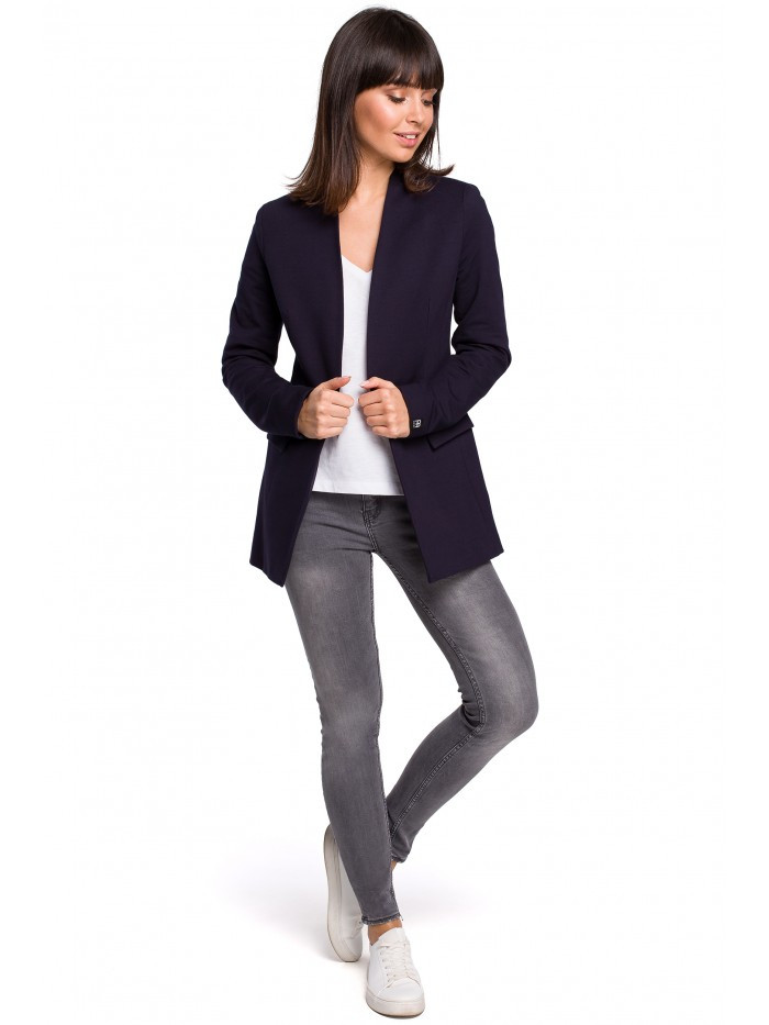 Domů Oblečení a móda Dámské oblečení Dámská saka B102 Otevřené sako z bavlněné příze - tmavě modré EU XXL