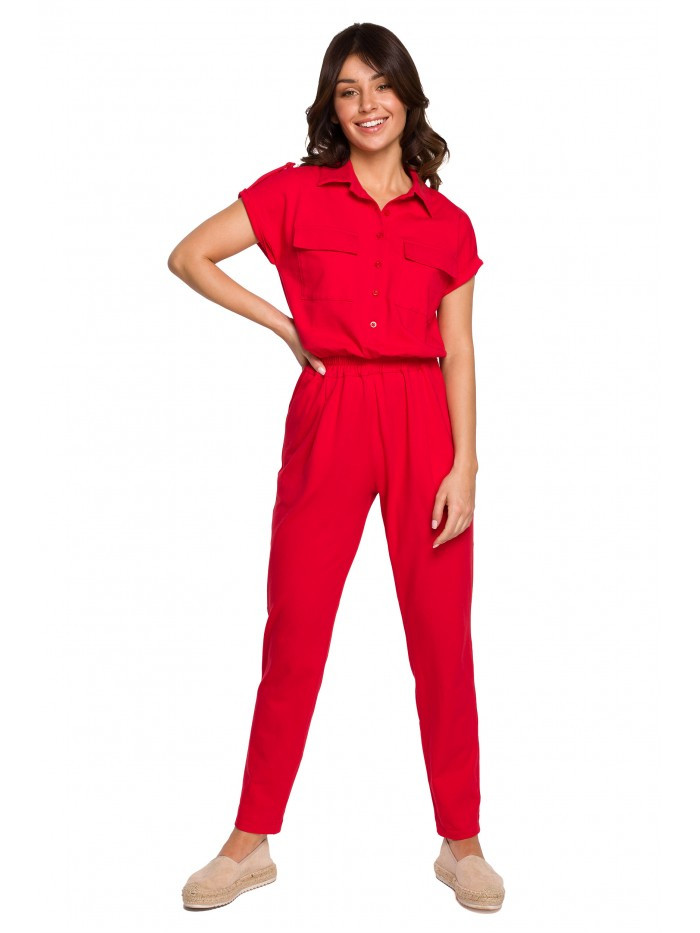 Domů Oblečení a móda Dámské oblečení Dámské halenky a košile B223 Safari kombinéza s kapsami s klopou - červená EU XL