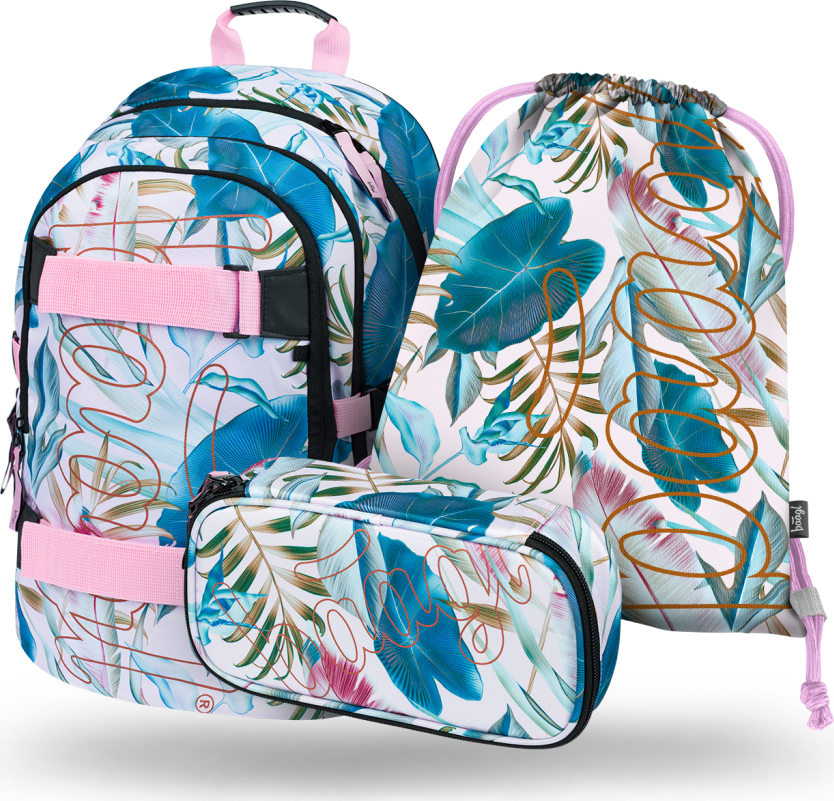 ŠKOLNÍ BATOH SKATE SKATE LEAFS • Ergonomický školní batoh se třemi samostatně uzavíratelnými komorami s vnitřním organizérem a kapsou na 15palcový notebook či tablet. • Ergonomicky tvarovaná záda, plně nastavitelné ramenní, prsní a boční kompresní popruhy pro optimální přizpůsobení postavě. • Na přední komoře batohu jsou umístěné dva popruhy na uchycení skateboardu. • Boční kapsy z pevné síťoviny, které jsou vhodné pro jednu z našich láhví na pití. • Velmi nízká hmotnost batohu – 850 g. • Objem batohu je 25 litrů, nosnost je 7 kg. • Batoh je vyrobený z pevného voděodolného materiálu. • Reflexní prvky pro větší bezpečnost. • Batoh má jako bonus kovový přívěšek ve tvaru skatu. • Batohy z řady SKATE byly testovány a certifikovány v akreditované zkušební laboratoři. PENÁL ETUE SKATE LEAFS • Pevný školní penál s výklopnou vnitřní přepážkou. • Vnitřní kapsa na zip. • Obsahuje rozvrh hodin. • Bez náplně. SÁČEK SKATE LEAFS • Sáček na cvičky nebo přezůvky s logem BAAGL, které ve tmě svítí. • Sáček je vyroben z pevného omyvatelného materiálu. • Zdrhování pomocí pevných tkanic, které zároveň umožňují nošení na zádech.