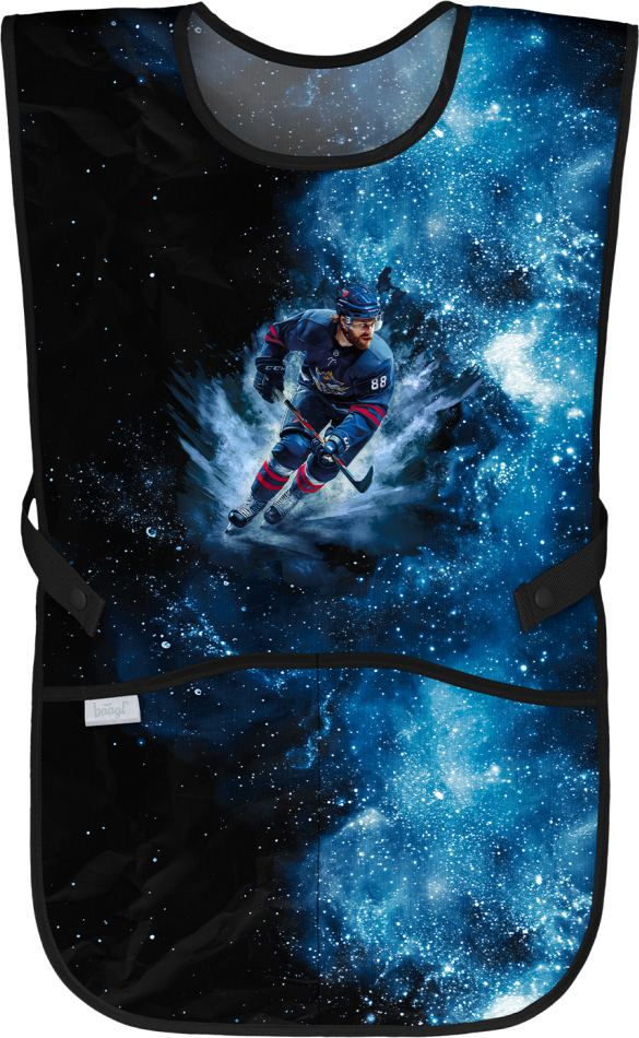 • Dětská zástěra na výtvarnou výchovu, pracovní činnosti a další kroužky. • V dolní části zástěry jsou dvě kapsy. • Vyrobeno z omyvatelného materiálu.