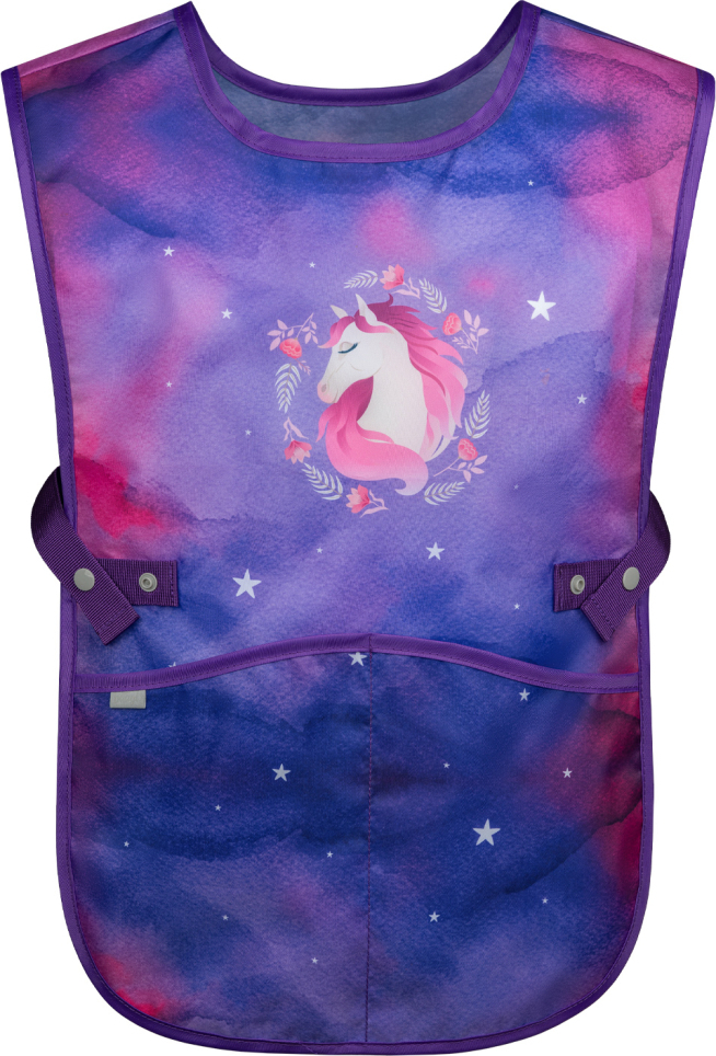 • Dětská zástěra na výtvarnou výchovu, pracovní činnosti a další kroužky. • V dolní části zástěry jsou dvě kapsy. • Vyrobeno z omyvatelného materiálu.