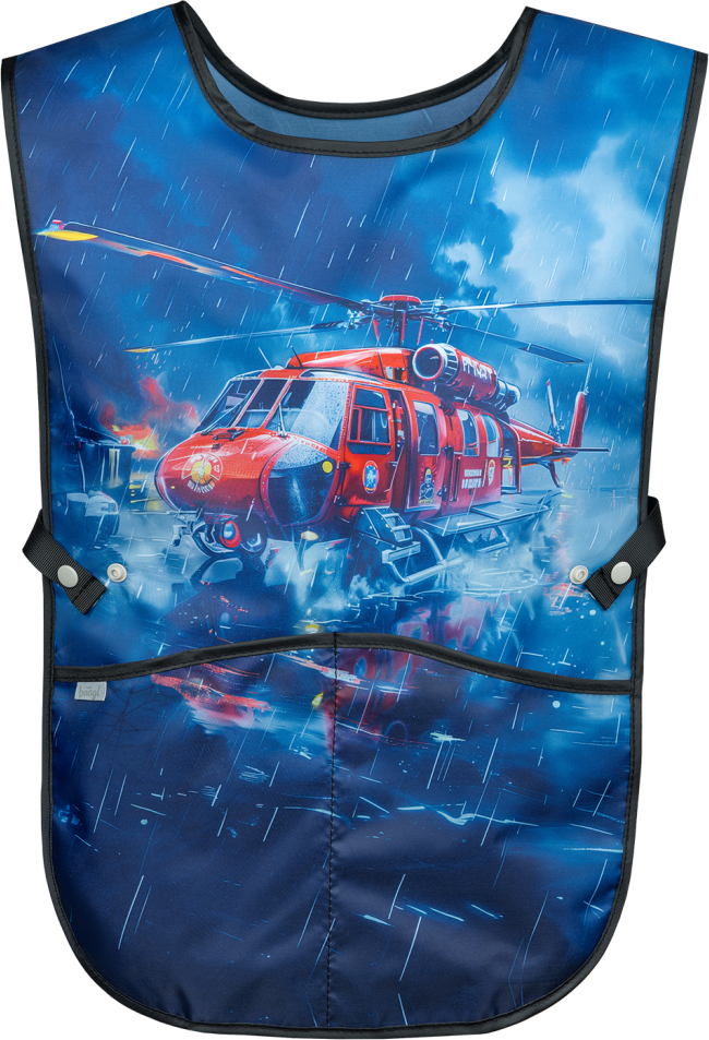 • Dětská zástěra na výtvarnou výchovu, pracovní činnosti a další kroužky. • V dolní části zástěry jsou dvě kapsy. • Vyrobeno z omyvatelného materiálu.