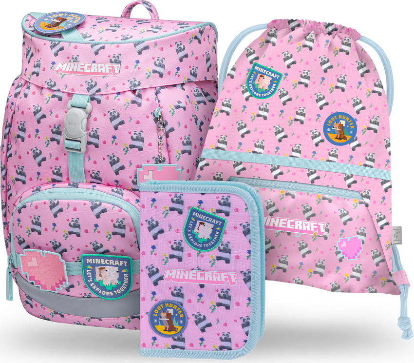 ŠKOLNÍ BATOH AIRY MINECRAFT PANDA • Ultralehký školní batoh AIRY s vyměnitelnými odznáčky a hmotností pouhých 750 g je vhodný pro děti již od první třídy ZŠ. • Nízká váha a kompaktní konstrukce batohu spolu se systémem plně nastavitelných popruhů a podpůrných pásů zaručují maximální odlehčení a rovnoměrné rozložení zátěže. • Ergonomicky tvarovaná záda s AIRFLOW ERGO systémem zajišťují dobrou prodyšnost a dětem pohodlné a zdravé nošení. • Kompaktní batoh Airy, určený pro děti od 110 do 135 cm, vyniká intuitivním systémem zapínání Magnetic Click, který zvládne každý prvňáček. • Jednokomorové vnitřní uspořádání s kapsou a gumičkou pro uchycení desek na zádové straně slouží ke snadné organizaci všech školních pomůcek. • Batoh vyrobený z recyklovaného a voděodolného materiálu je opatřen řadou reflexních prvků pro maximální bezpečnost dítěte i za snížené viditelnosti. • Design batohu Airy umožňuje měnit design batohu prostřednictvím odnímatelných odznáčků (tzv. patchí). • Batohy Airy prošly důkladným testováním a jsou certifikovány akreditovanou zkušební laboratoří, která potvrzuje jejich vysokou kvalitu a bezpečnost. ŠKOLNÍ PENÁL JEDNOPATROVÝ MINECRAFT PANDA • Klasický jednopatrový penál se dvěma chlopněmi. • Disponuje značkovým zipem YKK, který zajišťuje vysokou odolnost. • Součástí penálu je také kapsička na drobnosti a okénko na rozvrh hodin. • Prostorný penál lze po otevření celý rozložit, což usnadňuje orientaci v jeho obsahu. • Pevné gumičky jsou vhodné i pro trojhranné pastelky a fixy. • Penál je dodáván bez náplně a je vyroben z recyklovaného materiálu. SÁČEK S KAPSOU MINECRAFT PANDA • Praktický sáček s kapsou na zip je vhodný nejen na přezůvky do školy, ale také na cesty, do města, na sportovní či jiné volnočasové aktivity. • Vyroben z pevného, omyvatelného materiálu a vybaven pevnými tkanicemi pro pohodlné nošení. • Díky praktickému poutku na přezku lze sáček snadno připevnit k batohu či aktovce.