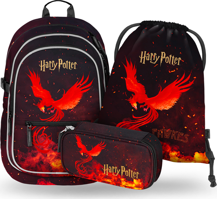 ŠKOLNÍ BATOH CORE HARRY POTTER FÉNIX • Školní batoh Core s anatomicky tvarovanými zády s odvětráváním a polstrovanou kapsou na notebook je ideální pro děti od 3. třídy ZŠ. • Lehká konstrukce s objemem 25 l a hmotností pouhých 900 g přispívá ke zdravému a pohodlnému nošení. • Ergonomický design a systém nastavitelných ramenních popruhů zajišťují rovnoměrné rozložení zátěže. • Batoh Core disponuje třemi samostatně uzavíratelnými komorami, vnitřním organizérem, kapsou na 15palcový notebook a termokapsou na svačinu. • Vyroben z recyklovaného, voděodolného materiálu a jeho nosnost je 7 kg. • Vysoce spolehlivé zipy japonské značky YKK zajišťují dlouhou životnost batohu. • Možnost sladění s další výbavou – k batohu lze dokoupit penál, sáček na obuv a další školní doplňky ve stejném designu. • Batohy Core jsou vybaveny reflexními prvky, které dokonale odrážejí světlo. • Součástí batohu je také stylový přívěsek. • Testováno a certifikováno – batohy řady Core prošly testováním v akreditované zkušební laboratoři. ŠKOLNÍ PENÁL ETUE HARRY POTTER FÉNIX • Kompaktní penál na zip s prostornou hlavní komorou a dvojitou výklopnou chlopní nabízí dostatek prostoru pro psací potřeby i drobnosti. • Součástí penálu je také vnitřní kapsa a okénko na rozvrh hodin. • Pevná táhla a značkové zipy YKK zaručují vysokou odolnost. • Vyrobený z pevného a recyklovaného materiálu. • Penál je dodáván bez náplně. SÁČEK HARRY POTTER FÉNIX • Sáček na obuv či jiné drobnosti pro vaše volnočasové aktivity. • Sáček je vyroben z pevného omyvatelného materiálu. • Zdrhování pomocí pevných tkanic, které zároveň umožňují nošení na zádech.