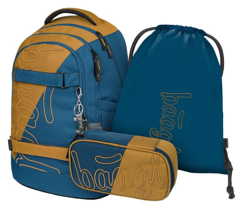 ŠKOLNÍ BATOH SKATE MAX DUO • Lehký batoh s hmotností pouhých 1150 g je vybaven posuvným zádovým systémem, který umožňuje nastavení až na čtyři různé velikosti. • Kompaktní batoh Skate Max je ideální pro žáky a studenty od 155 do 185 cm, což odpovídá přibližně 3. třídě ZŠ a výše. • Batoh z recyklovaného, voděodolného materiálu je opatřen řadou reflexních prvků pro maximální bezpečnost dítěte i za snížené viditelnosti. • Disponuje odnímatelným bederním pásem a díky speciální výztuži z EVA pěny perfektně drží tvar. • Zesílené ucho batohu navíc zvyšuje jeho nosnost až na 8 kg. • V místech, kde se ramenní popruhy mohou dotýkat krku, je jemná síťovina na spodní straně mírně vytažena do svrchní části, což zajišťuje ochranu krku. • Tříkomorový organizér zahrnuje speciální kapsu na notebook z jemného sametového materiálu, který chrání elektroniku před poškrábáním. • Praktické dvoucestné zipy YKK umožňují snadný a rychlý přístup k obsahu batohu. • Postranní kapsy, ideální například na tritanové láhve BAAGL, jsou vyrobeny z pevného materiálu sladěného s designem batohu. • Součástí batohu je také stylový přívěsek. • Certifikace Global Recycled Standard (GRS) potvrzuje šetrnost k životnímu prostředí a splnění vysokých sociálních a ekologických požadavků. • Skate Max splňuje podmínky Institutu pro testování a certifikaci (ITC) ve Zlíně a nezávislé laboratoře QIMA. ŠKOLNÍ PENÁL ETUE DUO • Kompaktní penál na zip s prostornou hlavní komorou a dvojitou výklopnou chlopní nabízí dostatek prostoru pro psací potřeby i drobnosti. • Součástí penálu je také vnitřní kapsa a okénko na rozvrh hodin. • Pevná táhla a značkové zipy YKK zaručují vysokou odolnost. • Vyrobený z pevného a recyklovaného materiálu. • Penál je dodáván bez náplně. SÁČEK DUO • Sáček na obuv či jiné drobnosti pro vaše volnočasové aktivity. • Sáček je vyroben z pevného omyvatelného materiálu. • Zdrhování pomocí pevných tkanic, které zároveň umožňují nošení na zádech.