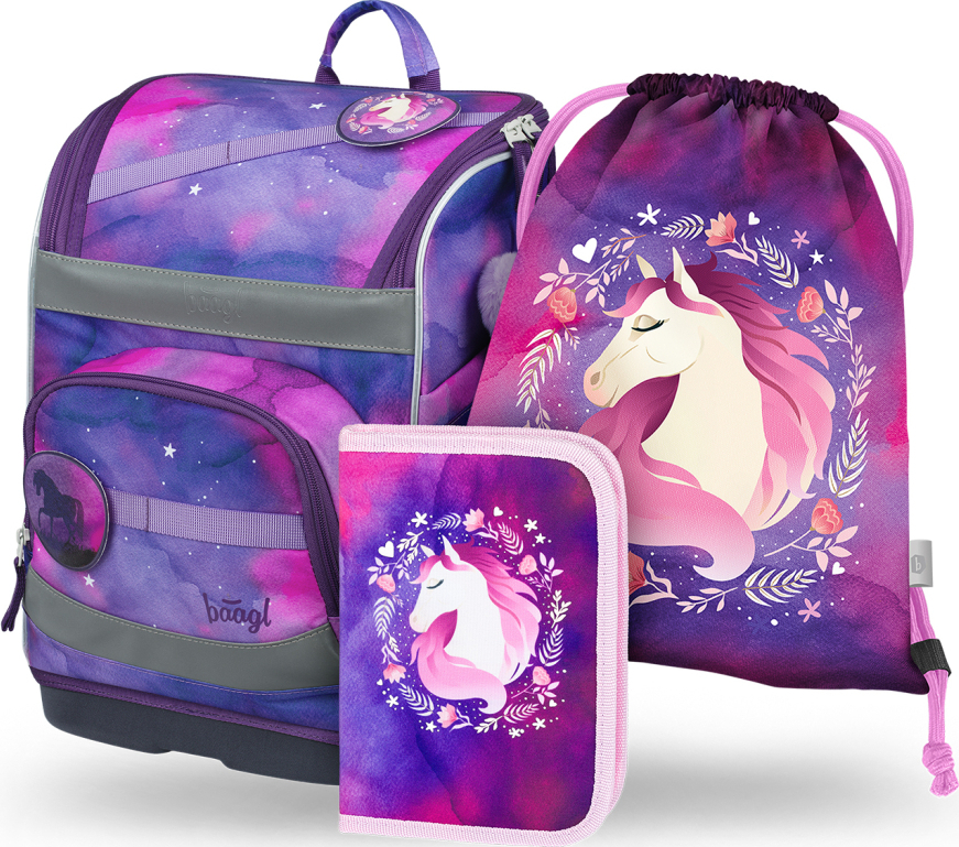 ŠKOLNÍ AKTOVKA ZIPPY PLUS KŮŇ • Lehká školní aktovka s vyztuženým tělem je vhodná pro děti od 1. třídy ZŠ. • Posuvný zádový systém umožňuje nastavení aktovky na tři různé velikosti, díky čemuž taška roste spolu s dítětem. • Díky plně nastavitelným popruhům lze tašku dokonale přizpůsobit postavě školáka. • Aktovka Zippy Plus je vybavena odnímatelným bederním pásem, přehledným vnitřním organizérem a speciální termokapsou na svačinu. • Jedinečný systém vyměnitelných odznáčků umožňuje přizpůsobit vzhled aktovky podle nálady a zájmů. • Design aktovky doplňují reflexní prvky a vysoce spolehlivé zipy prestižní japonské značky YKK. • Kompaktní aktovka s pevným dnem a hmotností 1 150 g drží stabilní tvar a samostatně stojí. • Aktovka Zippy Plus s objemem 21 l a nosností 7 kg je vyrobena z recyklovaného, voděodolného materiálu. • Aktovky z řady Zippy Plus jsou certifikovány akreditovanou zkušební laboratoří, která potvrzuje jejich vysokou kvalitu. ŠKOLNÍ PENÁL JEDNOPATROVÝ KŮŇ • Klasický jednopatrový penál se dvěma chlopněmi. • Disponuje značkovým zipem YKK, který zajišťuje vysokou odolnost. • Součástí penálu je také kapsička na drobnosti a okénko na rozvrh hodin. • Prostorný penál lze po otevření celý rozložit, což usnadňuje orientaci v jeho obsahu. • Pevné gumičky jsou vhodné i pro trojhranné pastelky a fixy. • Penál je dodáván bez náplně. SÁČEK KŮŇ • Praktický sáček vhodný nejen na přezůvky do školy, ale také na cesty, do města, na sportovní či jiné volnočasové aktivity. • Vyroben z pevného, omyvatelného materiálu a vybaven pevnými tkanicemi pro pohodlné nošení. • Díky praktickému poutku na přezku lze sáček snadno připevnit k batohu či aktovce.