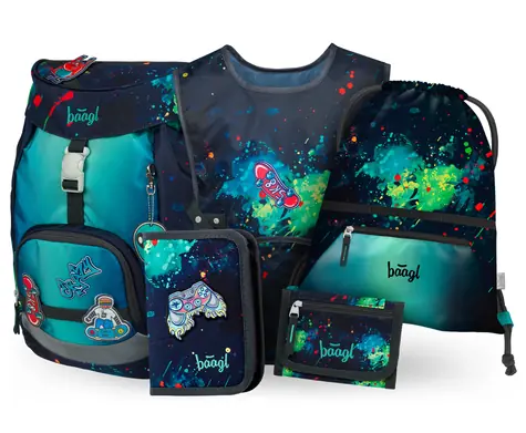 BAAGL SET 5 Cubic Flash: batoh, penál, sáček, ledvinka, obal na notebook GRS (A-36477)