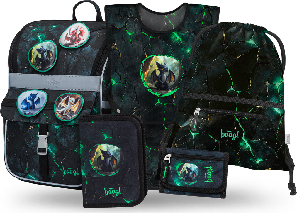 ŠKOLNÍ AKTOVKA ZIPPY DRACI • Lehká ergonomická školní aktovka s vyztuženým tělem, vhodná pro děti od 1. třídy ZŠ. • Posuvný zádový systém ERGO ADJUSTABLE umožňuje nastavení aktovky do tří různých velikostí, takže může doslova růst spolu s dítětem. • Plně nastavitelné popruhy zajišťují maximální přizpůsobení aktovky postavě školáka. • Praktický vyklápěcí systém otevírání umožňuje snadný přístup k pomůckám přímo z lavice. • Vnitřní prostor aktovky je doplněn gumičkou pro fixaci obsahu co nejblíže k těžišti těla. • Unikátní systém vyměnitelných odznáčků umožňuje přizpůsobit vzhled aktovky podle nálady a zájmů dítěte. • Bezpečnostní reflexní prvky zajišťují dobrou viditelnost dítěte za šera i při zhoršené viditelnosti. • Vysoce spolehlivé zipy prestižní japonské značky YKK garantují dlouhou životnost aktovky. • Boční kapsy z pevného materiálu jsou ideální pro titanové láhve. • Aktovka Zippy s objemem 18 l a nosností 6 kg je vyrobena z pevného, voděodolného materiálu. • Kompaktní aktovka s hmotností 1 100 g má pevné dno a samostatně stojí. • Unikátní systém vyměnitelných odznáčků umožňuje přizpůsobit vzhled aktovky podle nálady a zájmů dítěte. • Aktovky z řady Zippy byly testovány a certifikovány v akreditované zkušební laboratoři, která potvrzuje jejich vysokou kvalitu a bezpečnost. ŠKOLNÍ PENÁL KLASIK DVĚ CHLOPNĚ DRACI • Klasický jednopatrový penál se dvěma chlopněmi. • Disponuje značkovým zipem YKK, který zajišťuje vysokou odolnost. • Součástí penálu je také kapsička na drobnosti a okénko na rozvrh hodin. • Prostorný penál lze po otevření celý rozložit, což usnadňuje orientaci v jeho obsahu. • Pevné gumičky jsou vhodné i pro trojhranné pastelky a fixy. • Penál je dodáván bez náplně a je vyroben z recyklovaného materiálu. SÁČEK S KAPSOU DRACI • Praktický sáček s kapsou na zip je vhodný nejen na přezůvky do školy, ale také na cesty, do města, na sportovní či jiné volnočasové aktivity. • Vyroben z pevného, omyvatelného materiálu a vybaven pevnými tkanicemi pro pohodlné nošení. • Díky praktickému poutku na přezku lze sáček snadno připevnit k batohu či aktovce. DĚTSKÁ ZÁSTĚRA DRACI • Dětská zástěra na výtvarnou výchovu, pracovní činnosti a další kroužky. • V dolní části zástěry jsou dvě kapsy. • Vyrobeno z omyvatelného materiálu. PENĚŽENKA NA KRK DRACI • Praktická peněženka se jmenovkou a možností zavěšení na krk. • Poskytuje dostatek místa pro uschování drobných, čipu na oběd nebo klíče od skříňky. • Nastavitelná šňůrka s pojistkou zajišťuje pohodlné a bezpečné nošení na krku. • Odolný a recyklovaný materiál pro každodenní použití. • Uzavírání na suchý zip. • Samostatná kapsička na drobné.