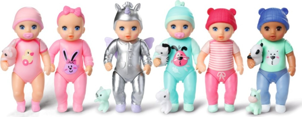 Panenky BABY born Minis se díky své praktické velikosti 7 cm vejdou do každého batůžku nebo kabelky a děti si je mohou vzít všude s sebou. Každá z figurek je jedinečná. Roztomilá miminka mají malé zvířecími kamarády a některé i efekt změny barvy. Pohyblivé ruce, nohy a hlava zaručují, že se hraní s panenkami promění v nezapomenutelný zážitek a sbírání panenek tak bude ještě zábavnější! • Panenky BABY born Minis na hraní i sbírání. • Součástí je malý sběratelský plakátek a aršík se samolepkami BABY born Minis.