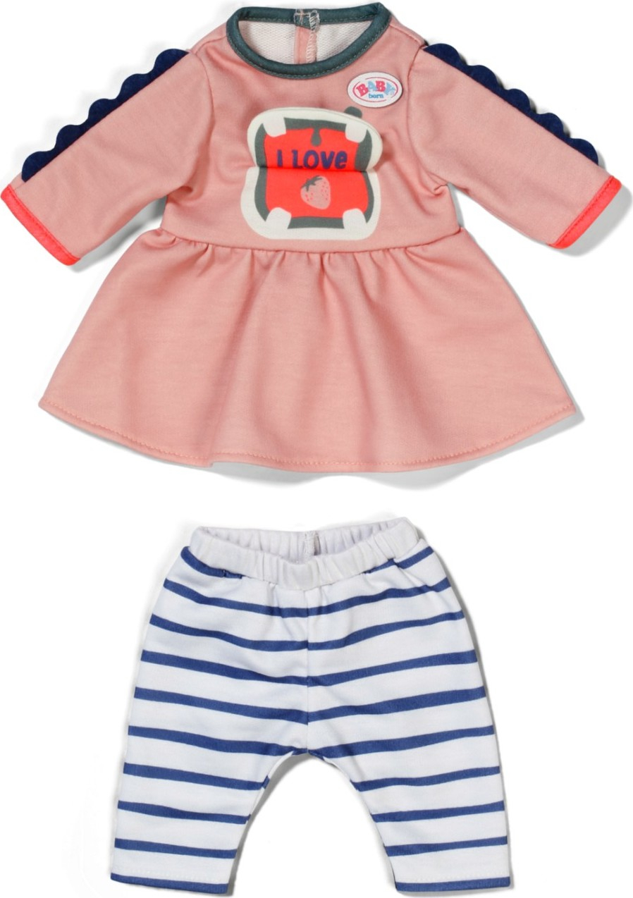 Šatičky v jemných barvách s obrázkem roztomilého hrošíka. • Sada šatiček s motivem hrošíka a pruhovaných legín • S interaktivním prvkem – otevíratelná pusa hrošíka • Vhodné pro panenky velikosti 36 cm • Součástí je ramínko z recyklovaného materiálu • Kvalitní doplněk pro rozšíření kreativní a pestré hry