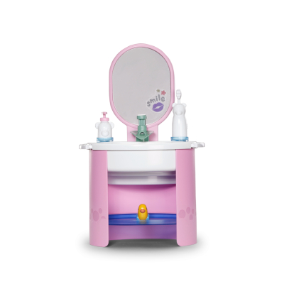 BABY born umyvadlo funguje bez baterií. S kartáčkem na zuby a s dávkovačem mýdla. Zábava se skutečnou vodou: Umyvadlo lze napustit vodou, která se do umyvadla dostává pumpováním kohoutku. Legrační špunt Berta: Malá kačenka pomáhá zadržet vodu – pro ještě více herních