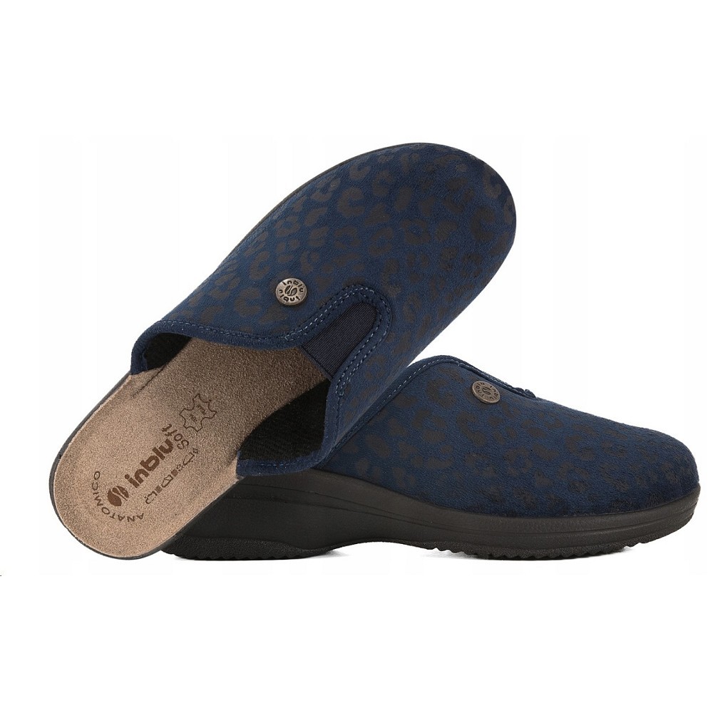Bačkory INBLU LV 16-004 dámské na doma – tmavě modré Dokonalý komfort a styl s dámskými bačkorami Inblu LV 16-004, které jsou navrženy pro maximální pohodlí v domácím prostředí. Tyto bačkory mají elegantní vzhled což z nich činí ideální volbu pro každodenní nošení. Specifikace: Velikosti: 36-41Barva: Tmavě modrá, která je univerzální a snadno se kombinuje s různými domácími outfity. Materiály: Vrchní materiál: Vyroben z texturované velurové tkaniny, která dodává pantoflům luxusní vzhled a příjemný pocit na dotek.Podšívka: Textilní materiál, který je měkký a prodyšný, zajišťuje komfortní nošení po celý den. Vložka: Materiál: Přírodní kůže, která je známá svou prodyšností a schopností přizpůsobit se tvaru chodidla.Vlastnosti:SOFT: Měkká a pohodlná, poskytuje pocit jako chůze po obláčku.ANATOMICO: Pěnová vložka, která se dynamicky přizpůsobuje tvaru chodidla, což zajišťuje podporu a pohodlí při každém kroku. Podrážka: Materiál: PU (polyuretan), který je lehký a pružný, což zajišťuje pohodlnou chůzi.Vlastnosti:Dobře drží na podkladu, což je ideální pro domácí prostředí, kde je stabilita klíčová. Tyto bačkory jsou navrženy tak, aby poskytovaly nejen pohodlí, ale také dlouhou životnost díky kvalitním materiálům a preciznímu zpracování. Jsou ideální pro ženy, které hledají spolehlivou a stylovou domácí obuv, která se snadno udržuje a nabízí vynikající komfort. Velikost prosím napište do poznámky.