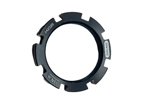 Pojistná matice pastorku motoru Bafang M510. Průměr závitu 31 mm, celkový průměr hlavy 42 mm, výška 6 mm.