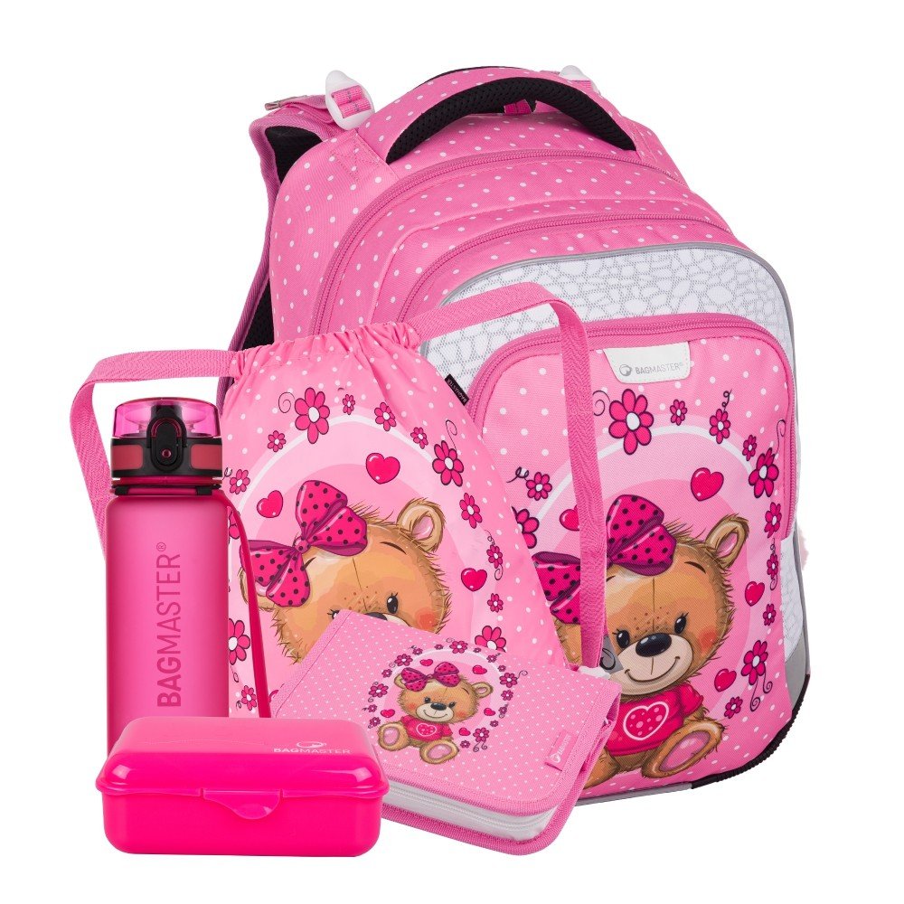 Tříkomorový prostorný batoh Lumi s medvídkem je ušitý tak, aby byl vhodný pro školačky od první do třetí třídy. Malé slečny ocení kromě obrázku tři prostorné komory a vychytaný organizér na cennosti. Rodiče zase reflexní prvky a odborně navržený zádový systém, který podporuje správné držení těla. Výbavu pro malou princeznu doplňuje penál, látkový vak a sladěný svačinový set.